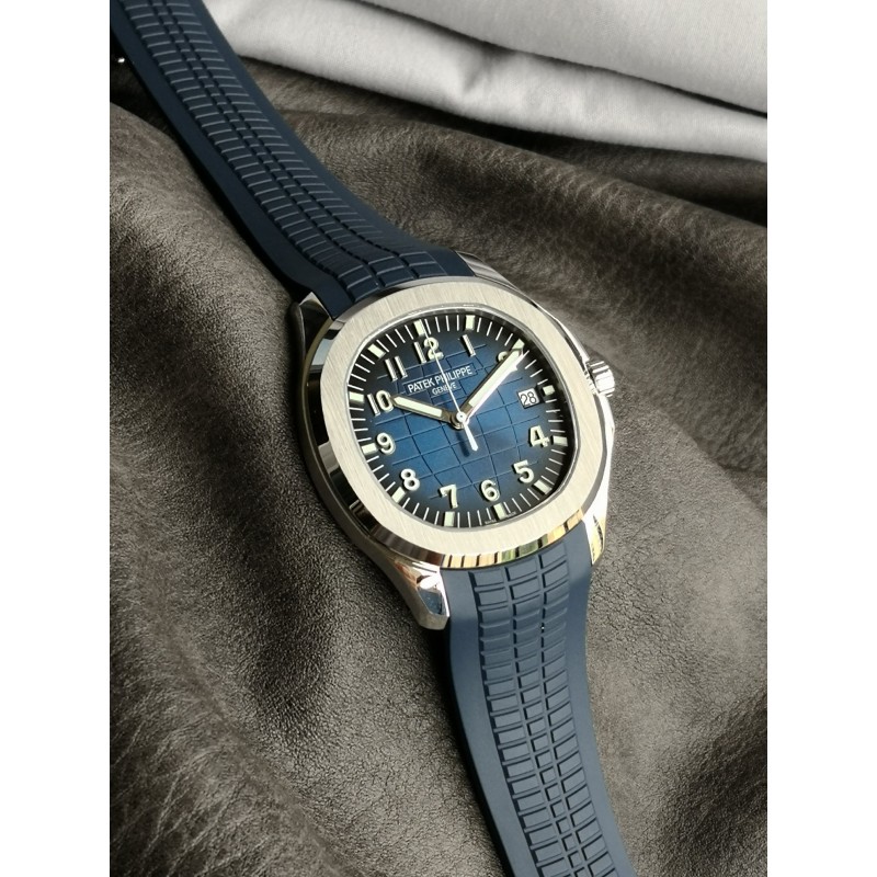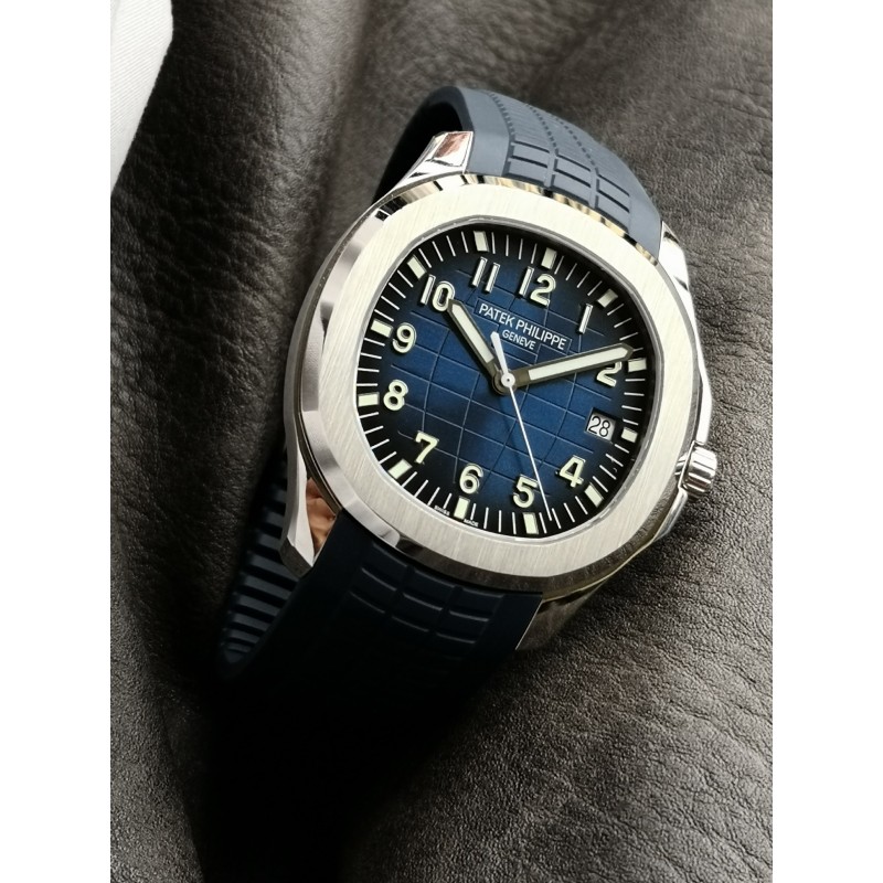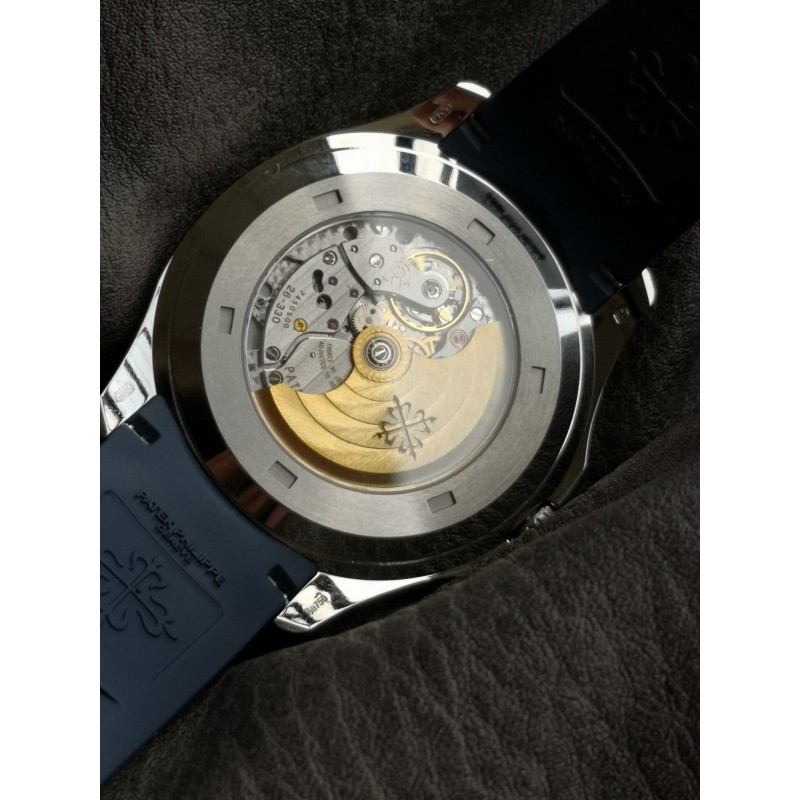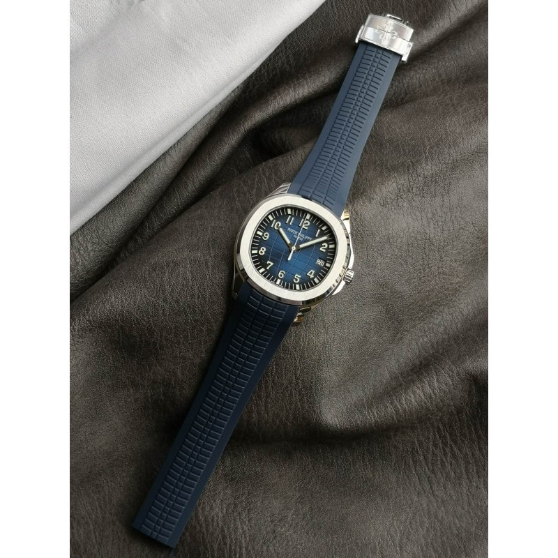 3K百达翡丽AQUANAUT系列5168G-001腕表,精钢表壳搭配蓝色天然橡胶表带,蓝色渐变的浮雕