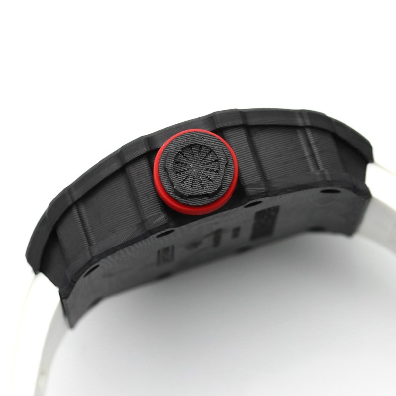 『新厂-NEW Factory』【天花板】RICHARD MILLE理查德米勒RM 35-01 RAFAEL NADAL碳纤维腕表——作为亿万富豪的入场劵 1机芯:目前市场最高版本机芯,独家研发原装RMUL3镂空一体机芯、白宝石避震器、经过长期测试,稳定性相当高,机芯打磨到位,(原装同步) 2表壳:进口NTPT 原装纹路碳纤维打造、轻量 级表款,克重仅 50g、内胆与表盖钢件采用钛 合金材料、CNC 高精密加工、使表壳配合完美 无缝隙!真正做到原装正品细节。 3表盘:镂空表盘搭配经典黑红赛道内影展现腕 表独有魅力 4:表镜:采用高弧度蓝宝石镜面双,并采用双面电镀高透膜,具有防眩效果,清晰而精致。 5:表带:天然橡胶表带与编制魔术贴表带选 择、 6:表扣:钛合金折叠表扣,原装开模,刻字清晰立体,完美还原正品形状,弹簧片同样采用钛金属,弹性效果更好更持久 7:螺丝:全部采用钛金属电镀深灰色工艺,同步原装效果 『新厂-NEW Factory』实现新突破,用“心”对待腕表爱好者!