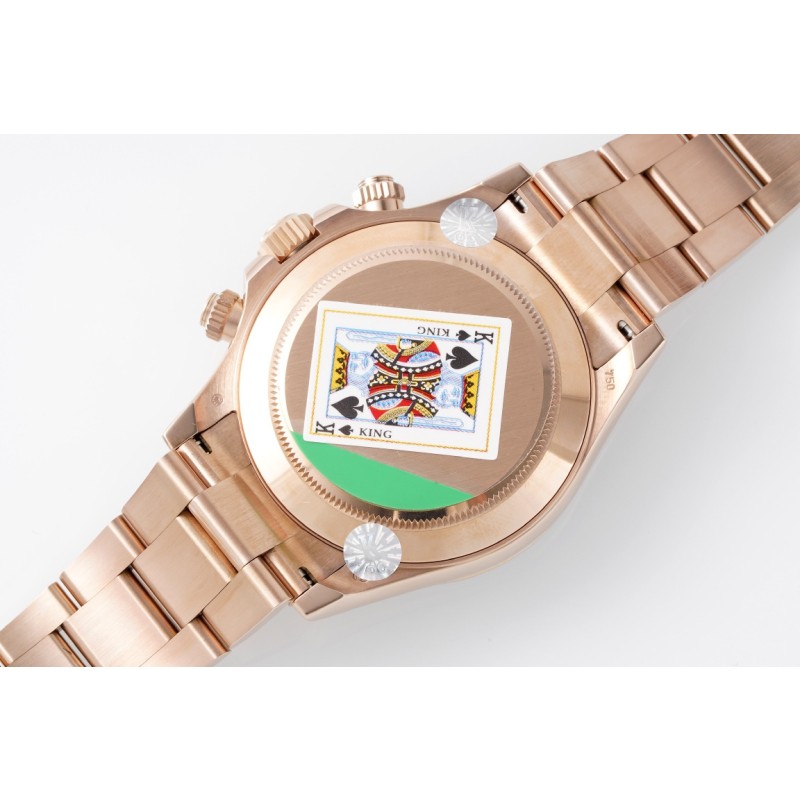 KING ROLEX DAYTONA 4130版本 出道即巅峰!无须再升级! 超级精品!欢迎品鉴! 超级大厂 瑞士A级品质 ! 真正原装1比1壳套打磨抛光! 尺寸:40mm*12.2mm 采用最好的代用级别表盘和夜光指针 搭载最强丹东4130机芯! 机芯夹板雕刻字体升级!圈口升级! 秒杀市场其它版本! AR精品全904L表带,不惜成本重金打造间金,全金,全玫瑰金款,采用包金式的18K金电镀工艺,是目前国内最好的单件散电!不透白,不掉色!成本极高,产量不多! KING 劳力士 迪通拿 以超绝的品质 满满的诚意 值得您拥有