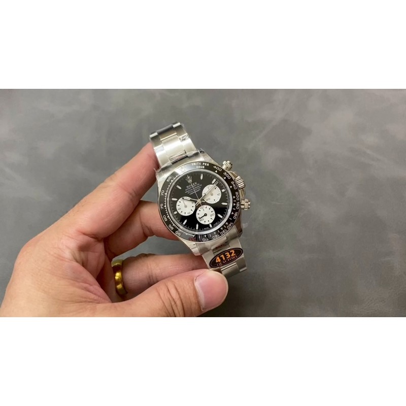 QF工厂 劳力士官方定制款勒芒24小时耐力赛100周年,劳力士全新发布了一款宇宙计型迪通拿,黑色陶瓷字圈上数宇“100”用醒目的红色标示,以此纪念赛事的100 周年。经典的保罗纽曼盘面搭配 蚝式表带,此次腕表同样采用背透设计,背部机芯清晰可见。4132机芯40mm