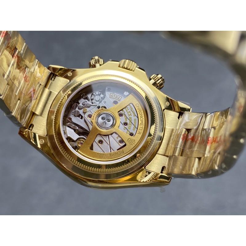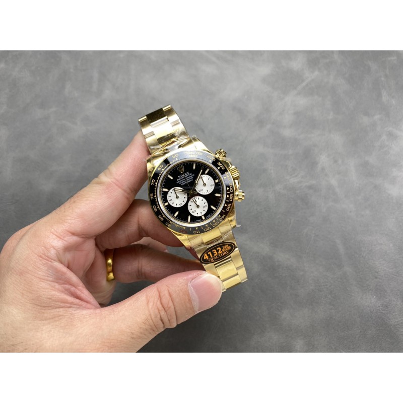 QF 配重4132 劳力士 加重175g迪通拿透底4132 官方定制款勒芒24小时耐力赛100周年,劳力士全新发布了一款宇宙计型迪通拿,黑色陶瓷字圈上数宇“100”用醒目的红色标示,以此纪念赛事的100 周年。经典的保罗纽曼盘面搭配 蚝式表带,此次腕表同样采用背透设计,背部机芯清晰可见。4132机芯40mm