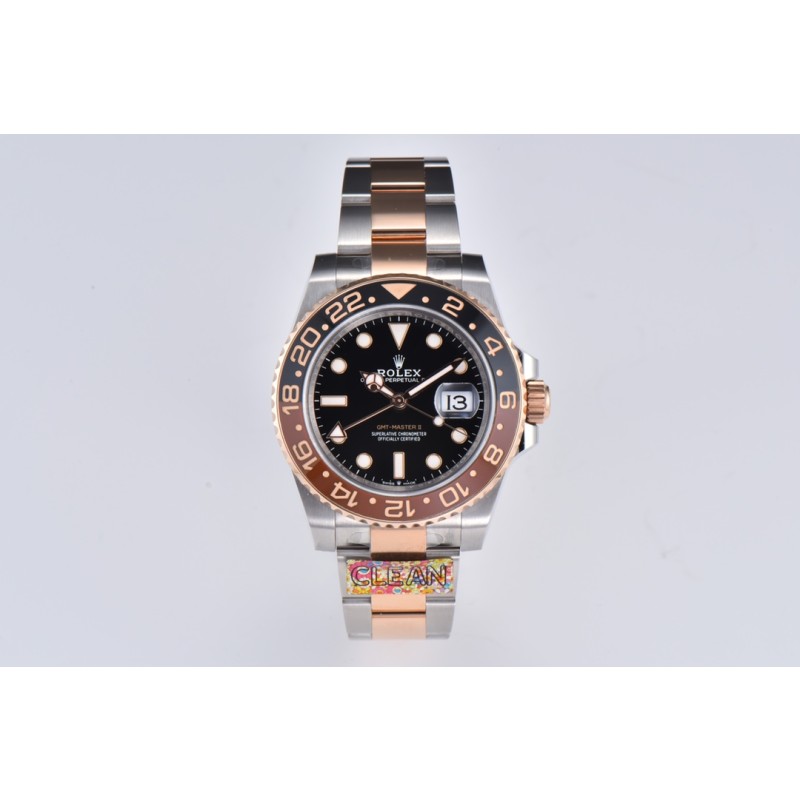 预售预售 c厂格林尼治126711沙士圈 沙士/黑棕圈特点简介 本次沙士圈为黑/棕色对应拼接,沿承可乐/国米圈加工工艺,两色相交之处,完美融合, 似拼非拼的视觉效果。黑色部分,毋庸置疑,是0色差的。本次棕色的调色上,可以说是 95%以上的相似度/在各个角度均有这个95%水准。后续有详细颜色对比。本次圈口为独 立开发,区别于市面上的任何版本。 表带部分工艺简介 表带部分,沿用三段式拼接+pvd 18k玫瑰金炉内电镀。表带带身部分,散件逐个电镀, 工序复杂,加工难度高。侧面不漏钢色。关注过c厂的都知道,两年之前有出过同种工艺 的间金水鬼,因为工艺要求实在太高,一度想要放弃这种三段式拼接的做法,导致c厂 40间金水鬼断货长达一年之久。本次为了最高还原沙士圈,也是鼓足勇气,再次尝试并 且有一个彩蛋,23年初会公布本次升级的隐藏的几处细节。 表盘/指针/玻璃/表壳就不再一一赘述,原装一比一开模制作,保持大厂工艺水准。 c厂一直秉承着,无原装,不开发,不达标,不出货的原则,从来不会在某个款式上, 急功近利的争抢第一名出货的工厂,希望能够在表友玩表的路途上,能够做到亦师亦友, 有则改之,无则加勉。
