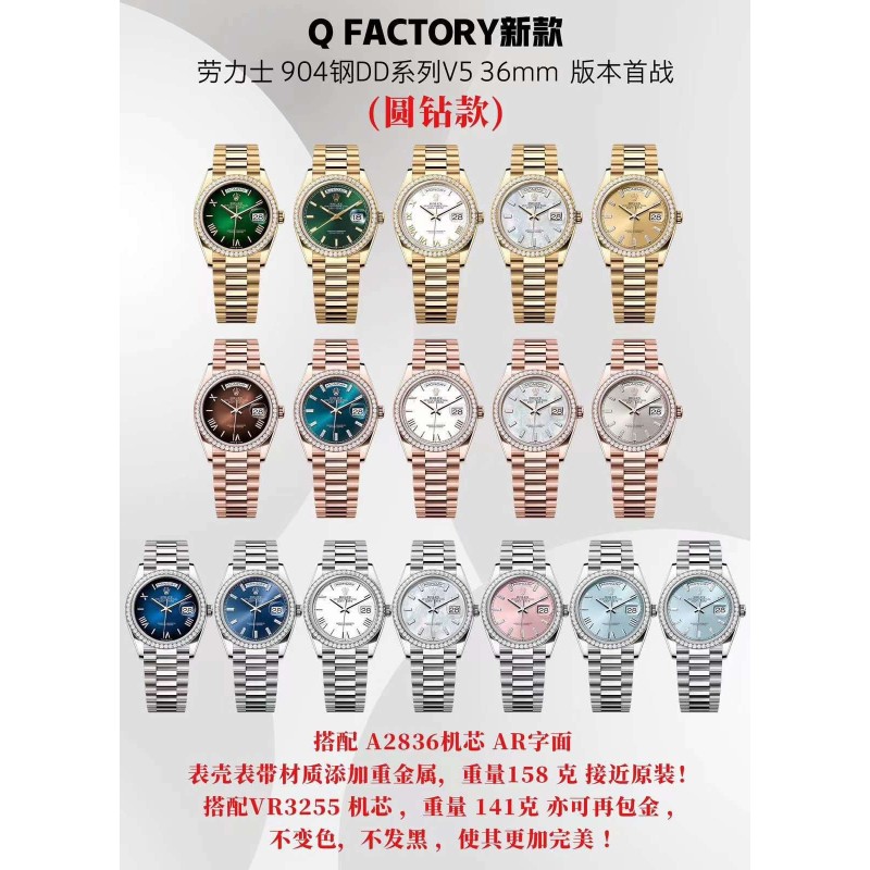 QF 配重 劳力士 星期日志 双历36mm 重量158g装2836机芯 重量140g装3255机芯 男女通用款,不掉皮,可包金!
