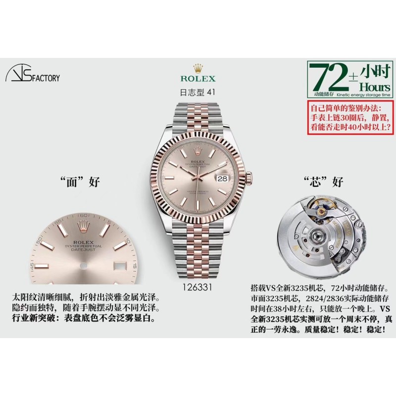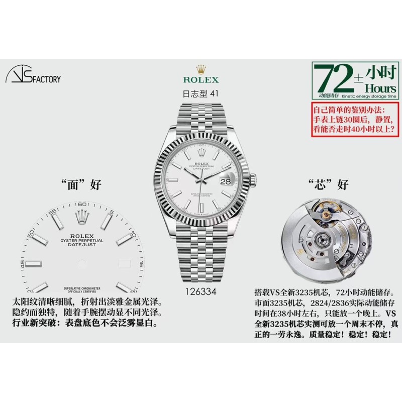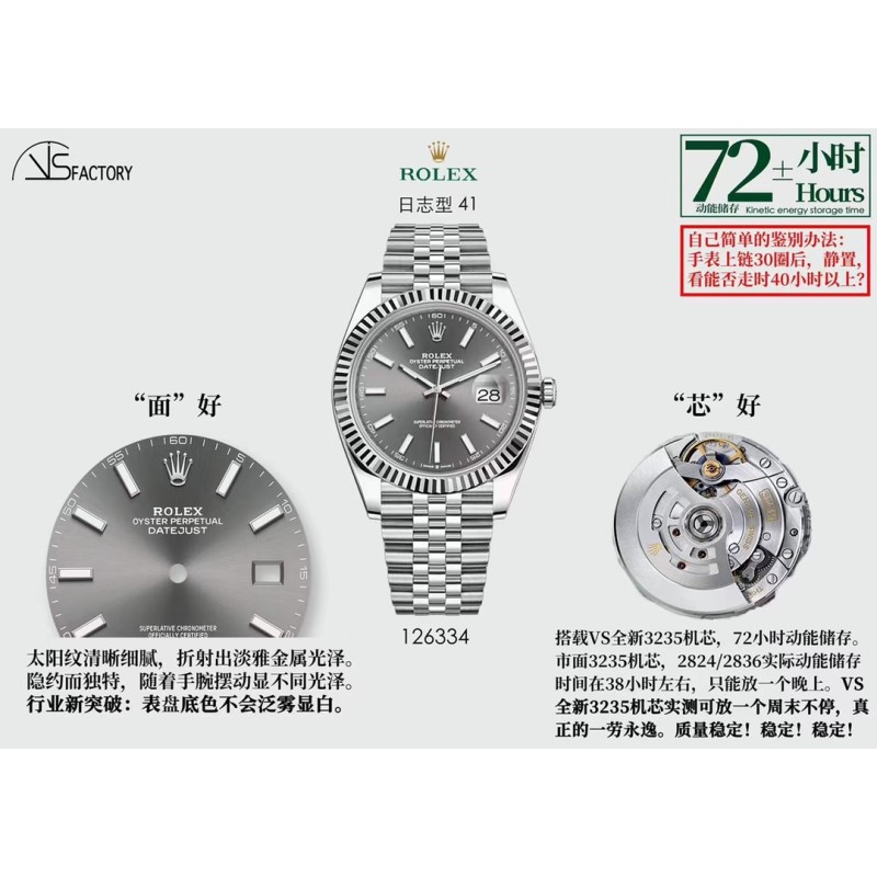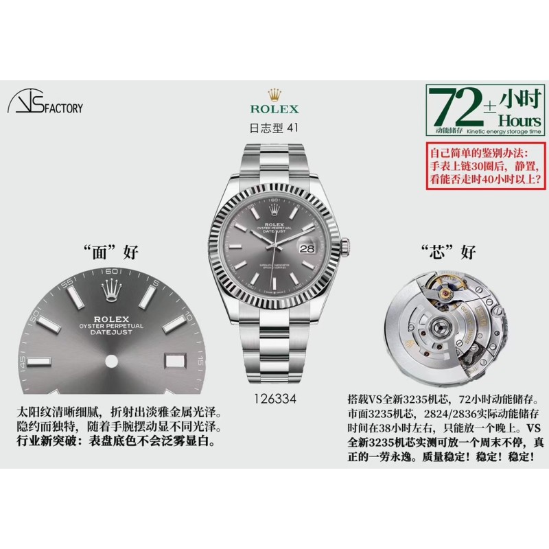 VS2022年新一代DJ日志41mm,VS3225机芯,唯一能72小时动能储存版本。而且质量稳定,几