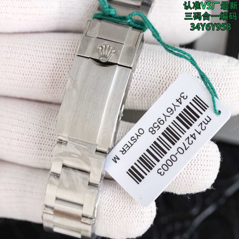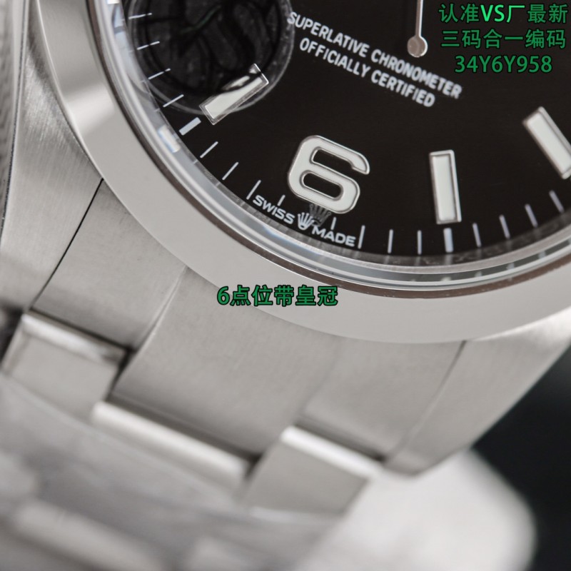 1850 VS探险家一214270,三码合一附带NFC感应卡 本次探险家,腕表编码34Y6Y958,腕表表扣编码, R3L。型号一214270 尺寸39mm 搭载3132一体机机芯机芯/,(非小厂低版本,机芯有日历档位,有空档)图片贴标错误 虽然这款并不是新款,在这之前也有不同工厂制作,但是都没有特别好的,甚至有部分细节可以说完全不对版。出于个人情怀,所以特别制作了这枚39mm 探险家。VS厂出品,必属精品,这款虽然是光圈板带,但是制作工艺也并不简单,特别是表盘上的数字刻度,形状要规整,整体打磨适中,以及填充夜光的难度。包括劳力士独有的奔驰潜水指针。可以说 探险家是蚝式恒动的进阶版。但是又没有水鬼的张扬。低调且内敛。是可玩性非常不错的一枚腕表。腕表编码,34Y6Y958,腕表表扣编码,R3L,三码合一定制美版,附带NFC,仿真度不言而喻。随后也会放出真假对比供玩家鉴赏。