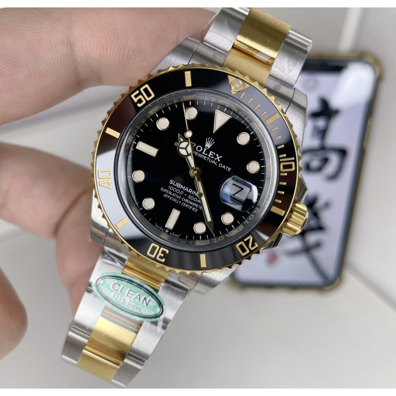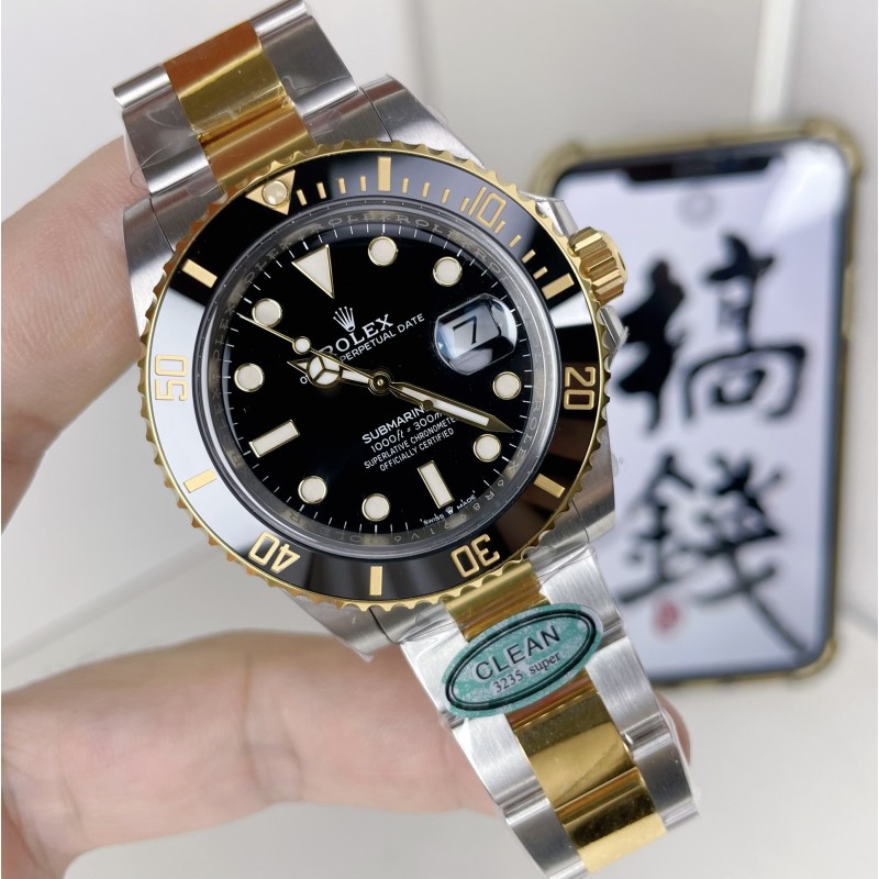 Clean/C厂,劳力士间金黑水鬼,规格:41毫米,搭载3235机芯,表扣编码:F80,实拍图