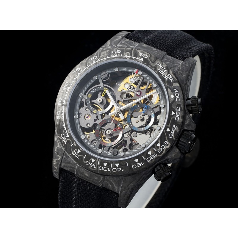 Diw 碳纤维迪通拿推出“导柱轮” Cal.4130 镂空机芯新款。4130机芯无疑是现阶段最好的计