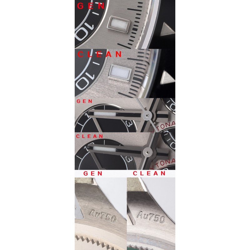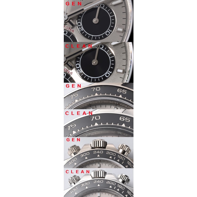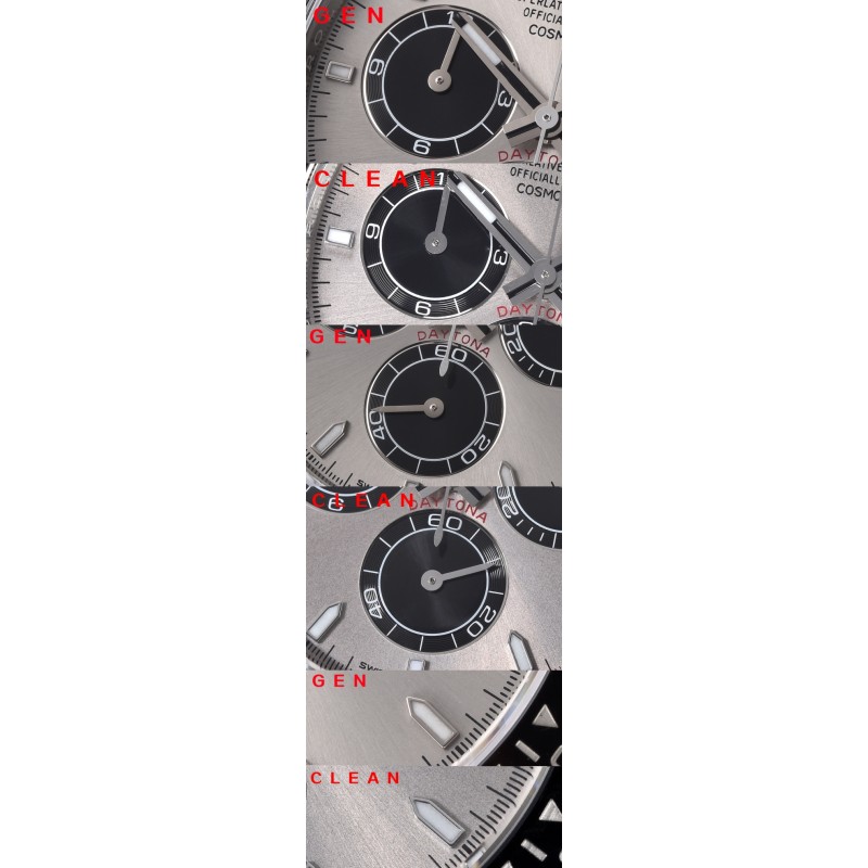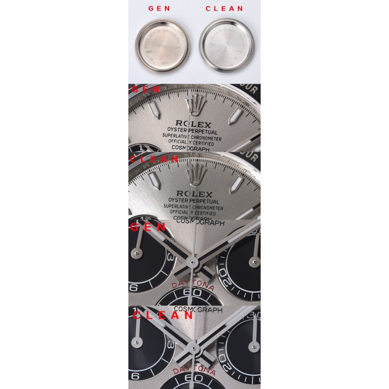 c厂126519水泥灰 其他部分 字钉 夜光 做的也很好/ps:上面有讲到真品4131以后指针的管头更改为圆柱形,但是clean提供的4只真品,我们发现了几个问题,例如 字钉的圆润度存在差异,指针有使用老款的锥形管头,所以劳力士官方可能在清理4130的库存。 表壳 表带上面也有图片对比,整体外观差异不大。 虽然这次时间特别紧张,但是clean在第一时间购买真品五只,据说手表本身的价值跌幅已经超过10w美金,这个当中不包含已经拆卸的手表,以及损坏的零件。 我仔细看过真假实物,也通过拍照进行对比,我个人觉得是一次非常好的创作。 选择sh4131当中有非常复杂的关系,但是希望大家能够理解 sh不等于低端品质,同样clean也从来不会因为想获取更多的利润从而降低采购成本,clean告诉我,这次sh4131机芯采购成本并不比dd4130低。 可能因为光线的问题。会附上自然光实拍图,我觉得可以以实拍图为准。
