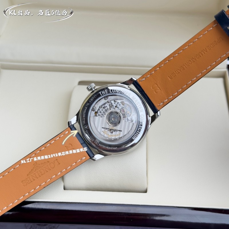 KL出品,再攀复刻高峰精心打造 浪琴 LONGINES 名匠最高级别一比一L2.628.4.78.6腕表——万千精妙,汇于一盘,布局精巧,观感绝佳!【购入原装表开模,精湛工艺视与腕间】【表壳】腕表尺寸38.5mmX9.6mm 表壳由品质出众的316L精钢精磨细造,光泽明亮,呈现原装闪耀质感的柔美线条。直立式表耳与表壳一体成型,佩戴贴手,极为舒适【机芯】采用2892机芯改原装型机芯,所有功能同步原版。是国内机芯重的骄傲产品之一,也是浪琴最具有特色的经典款式【字面】 浪琴月相还原度最高的“麦粒"饰纹,立体印刷的黑色阿拉伯刻度,每一处字体都严格参考原装款式,做到和正品互换的级别【指针】有着三把高温淬火锻造而成的蓝钢指针,深邃有致,熠熠生辉。游戏 蓝钢工艺为瑞士最高工艺等级,逆光深邃,对光耀眼!【机芯】机芯功能与原装吻合——完美融合,2892改原装自动上链机械机芯,每小时振动28,800次,可达45小时动力储存【KL工厂】KL工厂只为打造最具大众熟悉的浪琴最高品质腕表,产品丰富,不断改进,在追求品质的同时也做到了市场最具性价比的工厂之一,每一款腕表都会购入原装新品去开模制作,让腕表从细节到质感都完美还原,在这里感谢每一位支持KL工厂的商家和表友,我们会不断努力!