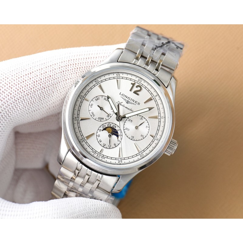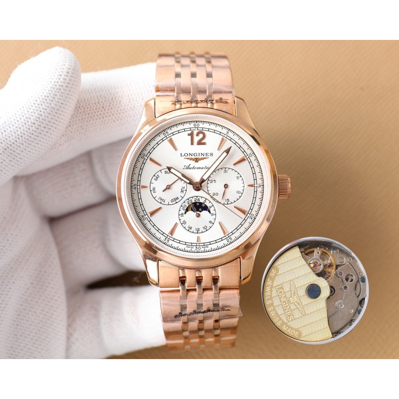 白壳520,玫瑰金540,钢带+20。 新款伊索米亚,多功能月相 3点6点9点位置分别设有星期 日期 24小时月相功能 采用3836机芯(稳定 走时精准) 壳侧身更是采用了拉丝工艺 让整体更加精致 耐用【全新升级 经典百搭】浪琴-Longines 男士腕表 全自动机械机芯 矿物强化玻璃 316L精钢表壳 316L精钢表带 (表带更有拉丝工艺) 时尚设计 商务休闲 尺寸:直径40mm 厚度12mm 卓越出品 必是精品