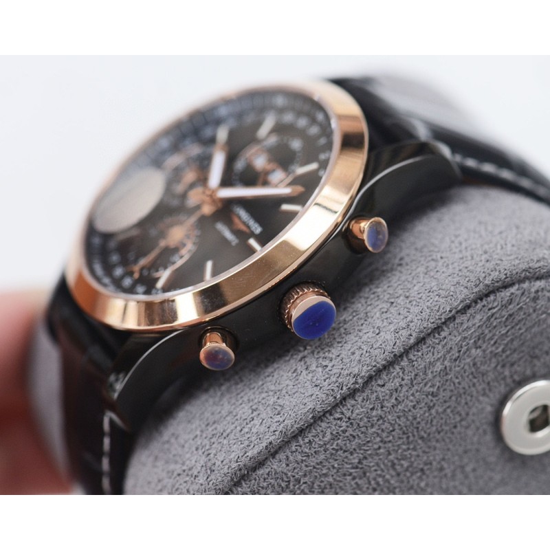 640。 男士“终结者” 黑间玫皮带版 在高品质“三针”泛滥的时代 F厂致力打造绝对性高品质“多功能”腕表 首推是浪琴全系最高级别的八针月相腕表“康铂” 工程浩大 耗时8个月 挑战性强 诸多细节是F厂 成立以来首次突破 。 配置参数: 品牌:浪琴 系列:康铂(1:1复刻) 机芯:F厂独家订制 上海9系全自动机械机芯 升级改良版 技术成熟 十分稳定 (动力贮备48小时) 品控:每一个腕表出品都经F厂QC员严格检查 校对后出货 (放心选购) 表壳材质:316L精钢 CNC数控雕刻 超精密 防水深度100米 字面:F厂首次使用Super-LumiNoVa夜光涂层 夜光效果十分凸显 表径:42MM 厚度11MM 产品等级:超A 功能:时、分、秒、9时位置设小秒针与24小时显示、星期 .月份.月相.半月形中心指针指示日期 计时功能:中心秒针顺时针转动、12时位置设30分钟累计计时盘 、6时位置设12小时累计计时盘 玻璃:抗磨损蓝宝石水晶镜面,涂有多层防反光涂层 皮带扣:三重折叠式安全表扣与按压式开启装置(正品一致) 表带:意大利进口皮带 (舒适耐用) 每一块腕表出货都有F厂统一包装 请准独家品质