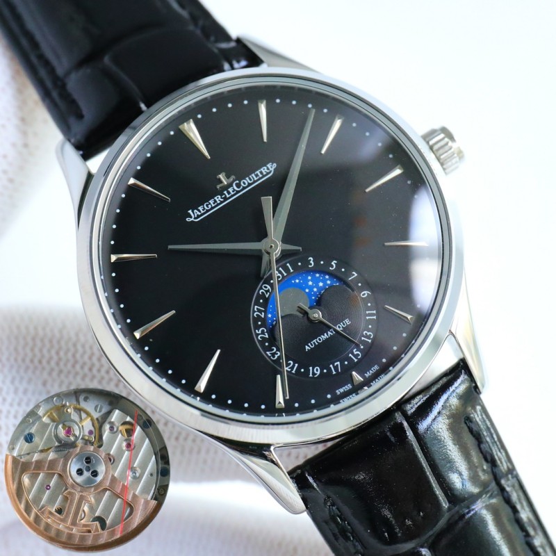 白580 玫600 (满天星月)升级版 Jaeger-leCoultre Master Ultra Thin Moon积家超薄月相大师系列39mm腕表,简洁的线条设计,赏心悦目的表盘。 显示令表盘尽显活力,6位日历显示指针搭配满天星月相宛如一幕和谐美妙的腕上芭蕾。透过玻璃底盖,机芯运行一目了然。这款厚度仅10毫米的超薄机芯向世人证实,超凡的技艺和极尽复杂的功能可以在狭小的空间内完美展现
