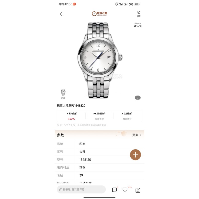 皮带1500 钢带1800 V9新品积家大师日历形系列6 该腕表机芯采用改一体机899型号机芯,机芯28800节拍走时稳,39mmX9.8mm,精致的超薄形外观,蓝宝石镜面玻璃,显得格外的精致,表带可选钢带或皮带!