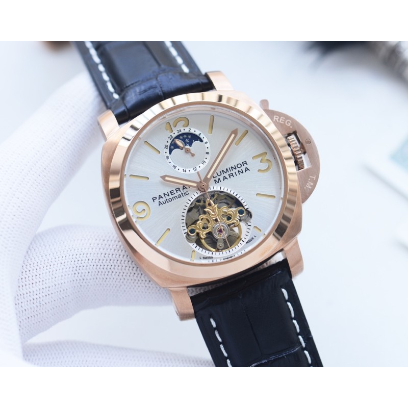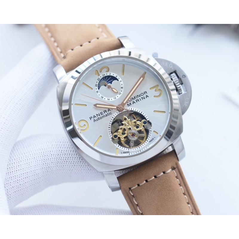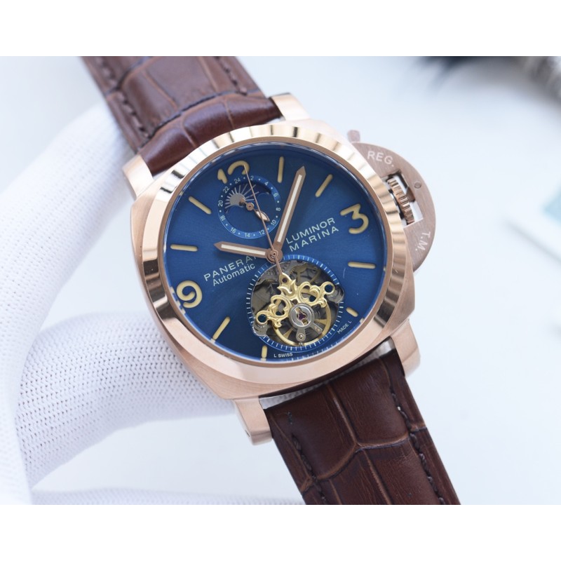 尊享价:550 品牌:沛纳海-PANERAI 类型:男士腕表 壳套:顶级版316精钢L 表带:进口小牛皮表带 机芯:全自动机械机芯 镜面:矿物质防刮镜面玻璃 尺寸:直径45mm厚13mm 精致传承真实效果,品质保证! 优雅格调瞬间提摄男士魅力,更是品位与生活尊贵象征!