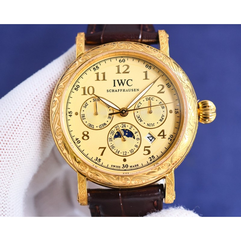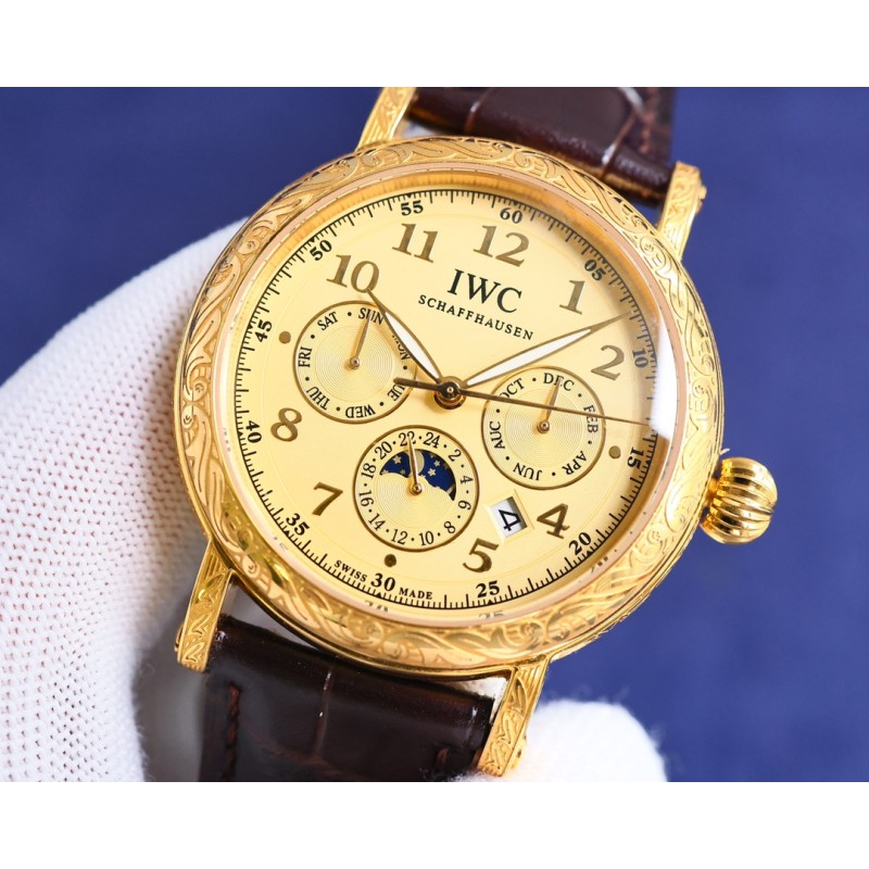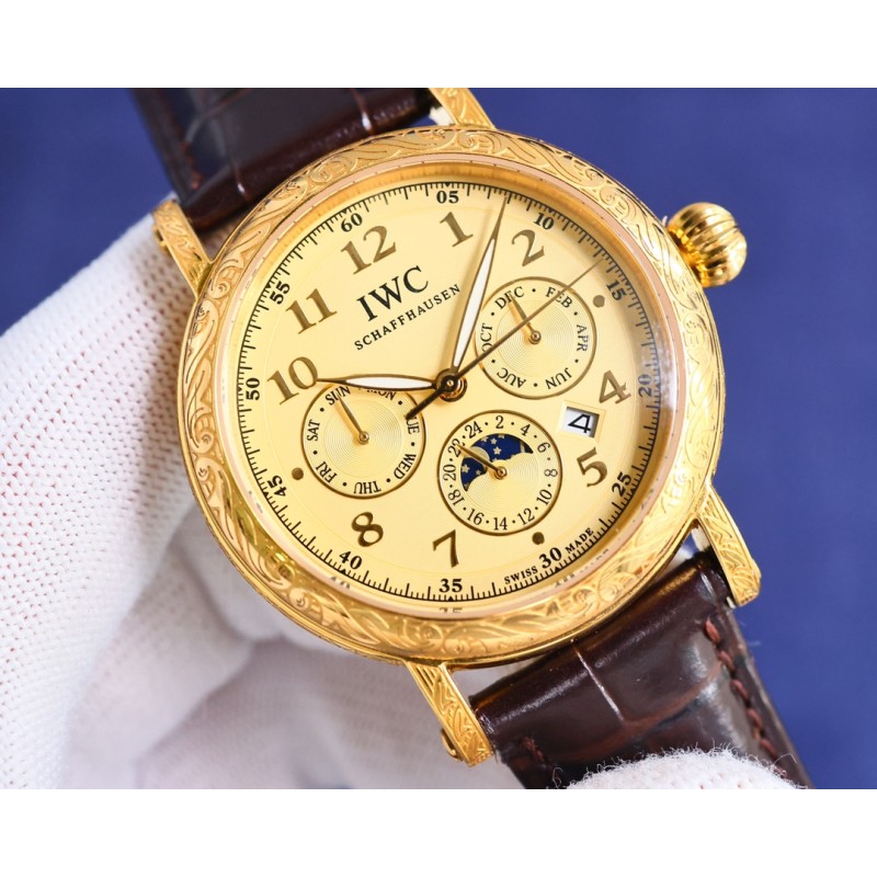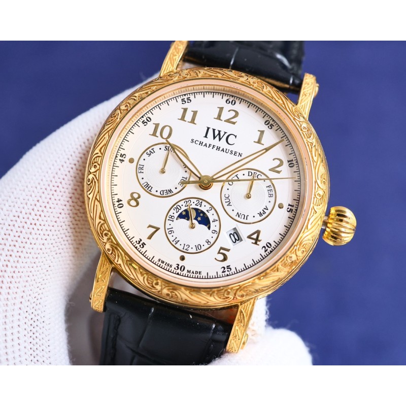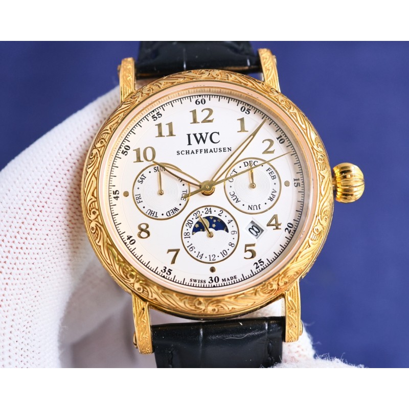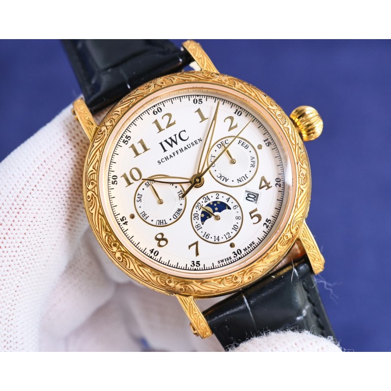 TW【铁划银钩 苍劲有力】高颜值新品: IWC~万国六针多功能高级纯手工雕花腕表-惊艳登场,为您呈现不一样的风彩。 IWC~万国复杂功能系列-纯手工-雕花腕表-惊艳登场,42毫米的表径适配大众男性手寸,非常商务可亦休闲。整表表壳手工雕刻花纹,视觉冲击力强,令人过目不忘,实物质感更加优美。 1搭配进口9100多功能机芯(真正做到零返修)功能(24小时,星期/星辰/月份)此腕表拥有38-48小时动力储备.【非市面国产普通差机芯】 2进口316L精钢,采用18k品质炉内真空电镀! 3搭配独家定制方形鳞纹牛皮表带 4耐磨防刮蓝宝石玻璃镜面! 530米生活防水等级.专为经典传承 珍稀工艺 应用而生,推出首款支持检验的产品 简约而不简单!本图为实物拍摄品质如一精品不断