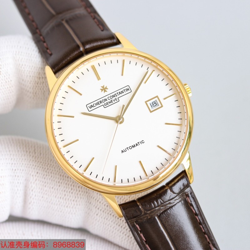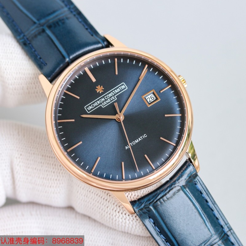 白570 金590 江诗丹顿VC传承系列腕表 ,完美圆形的表壳,搭配微孤式表耳设计,使之更加贴合佩戴者的手腕。简约大气的表盘设计,低调不失奢华。【机芯】搭载进口西铁城8215机芯,精准耐用。【表镜】双卜拱型蓝宝石玻璃镜面,均有防眩晕镀膜处理。【表针】优雅剑型指针,尾部结合表盘弧度特殊压弯处理。【表带】双层意大利小牛皮,搭配马耳他十字针扣。尺寸40cm,追求完美,简约而不简单。