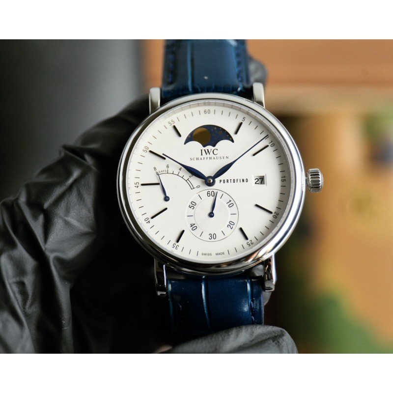 白壳1450 玫金1500 TWA新品 颜值巅峰 IWC旗下最耀眼的明星,万国长动能月相专家。 全新的柏涛菲诺系列IW516409透底腕表。 【表壳】316L精钢表壳,打磨抛光非常圆润。小秒针盘位于6点钟位置附拨针停秒功能,配有实心条钉刻度和罗马数字,9点位增添动能装饰,3点位写有PORTOFINO(柏涛菲诺英文)和准确距离日历窗,与弧形的动能装饰对称。12位配搭月相位置跟原版一致。我们可以注意到,这只手表的日历窗位于表盘最边缘,而且日历字体同原版一致。柳叶形指针分别指示小时和分钟,双面防反光拱形蓝宝石镀膜镜面 【表带】意大利小牛皮 【机芯】自主研制自动上链机械机芯,机芯稳定,走时准。 IWC旗下最耀眼的透底腕表。适合各种商务场合,简敛精致不失优雅!欢迎各路表友品鉴!
