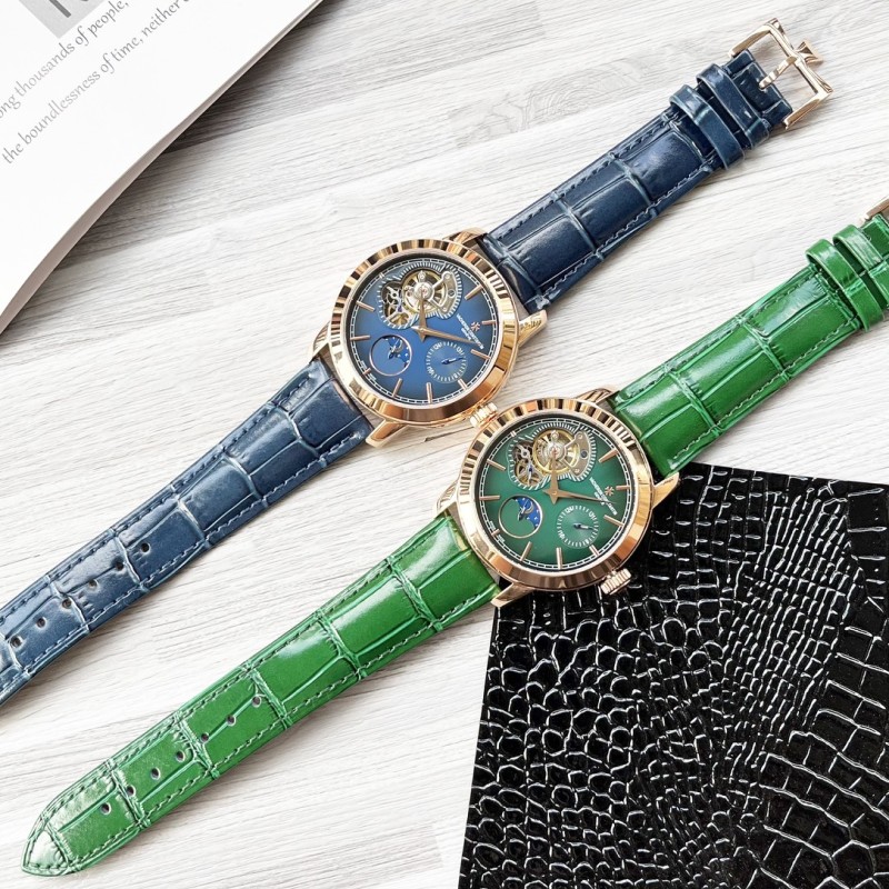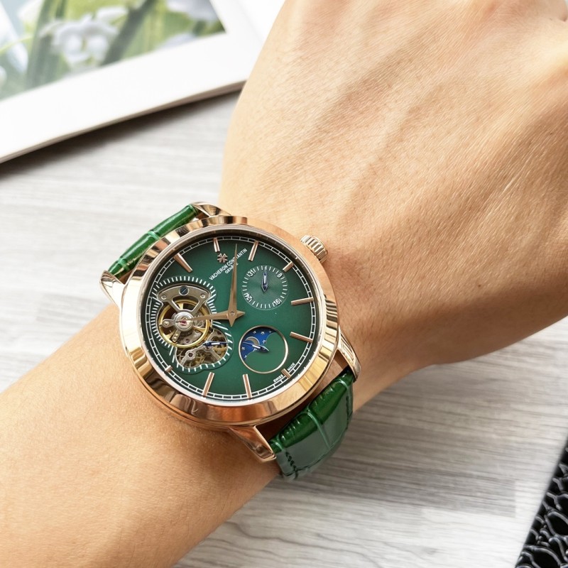 白520 金540 钢10 2024新款江诗丹顿全新Traditionnelle传袭系列陀飞轮腕表直径:43mm头层小牛皮!经典设计焕然一新,展现出制表传统与现代美学的和谐相融,迷人的深绿色旭日纹表盘,搭配白金材质的棒状时标和剑形指针突显出对比美感,六点位的陀飞轮360°均匀旋转,平缓而稳定的节奏,令人得以从容欣赏陀飞轮曼妙的机械之舞!收藏把玩级别入门款,上手即巅峰[强][强][强]还