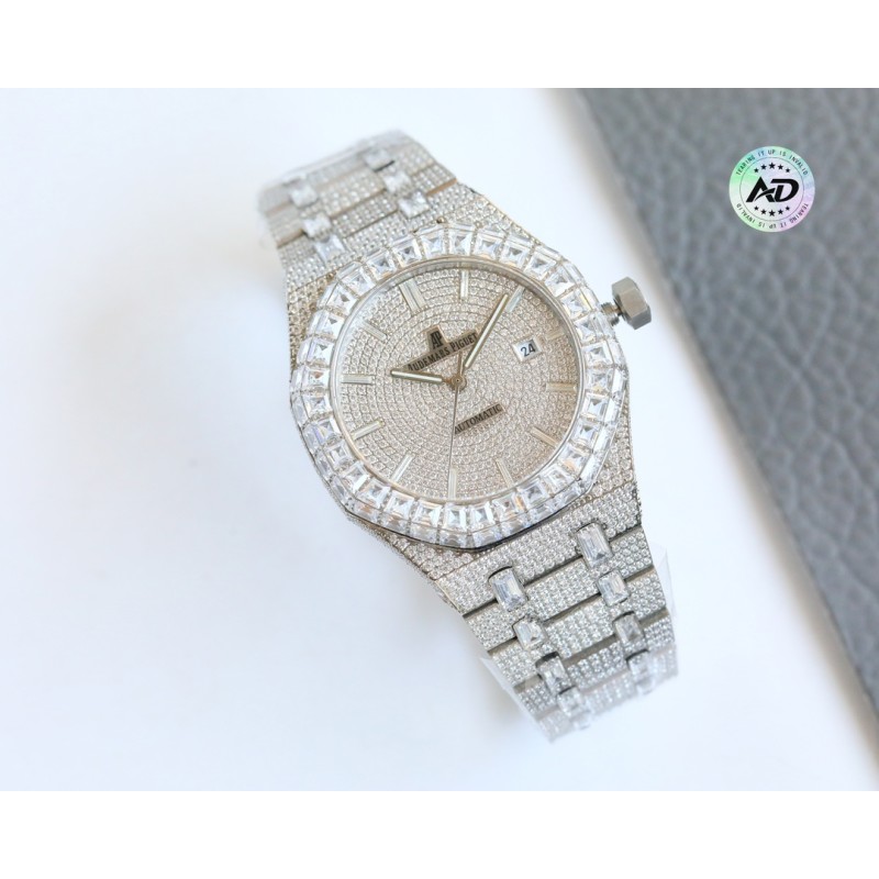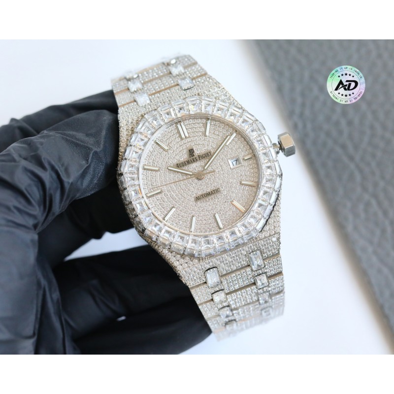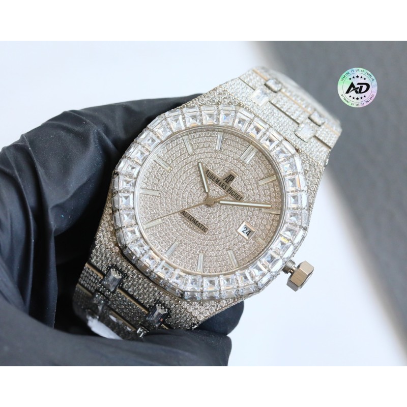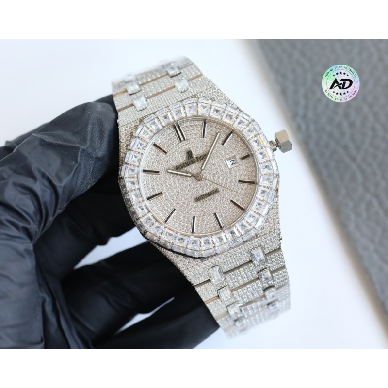 AP 爱彼 是真男人就得带爱彼 拥有AP,全新圈口搭配方钻圈,采用进口西铁城改324机 全自动机械男士腕表,皇家橡树50周年系列 15510 搭载316L不锈精钢表壳 实心厚重钢带精选进口施华洛世奇钻 光彩闪耀 精准稳定走时 耗时12个月改装还原满钻真实效果。超豪华版本 手工满镶钻 精品男士腕表 尊贵大气~风范时尚潮流,随意搭配都好看 永不过时款式 经典款耐看,采用316钢 进口牛皮带 尺寸:42mm×12mm。