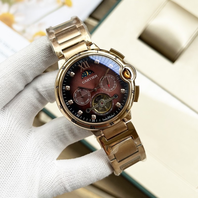白560-金580 钢带+30。卡地亚-Cartier 精品男士腕表,全新多功能设计,尊贵大气,绅士