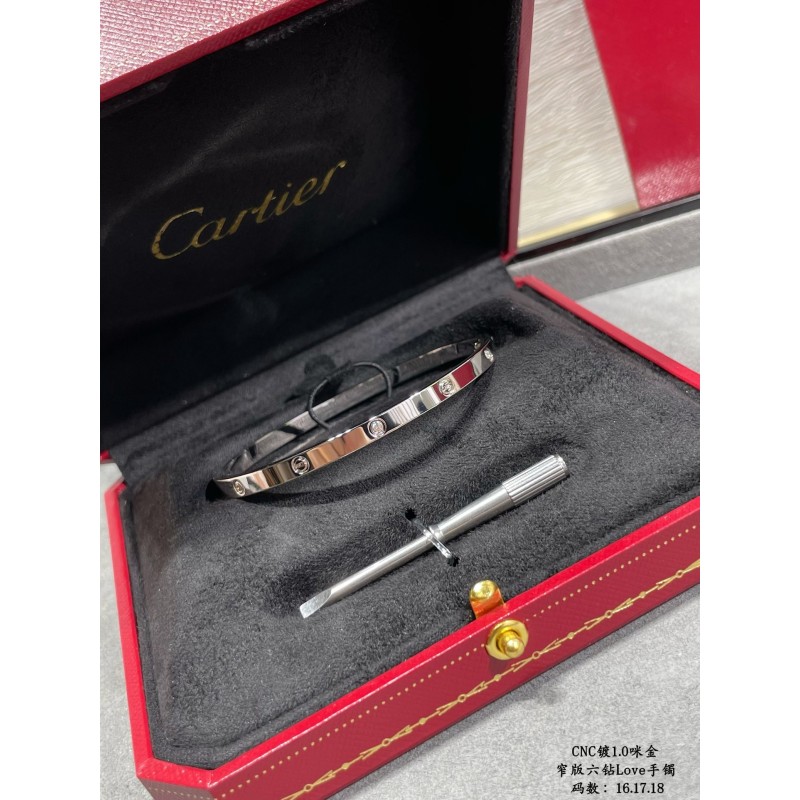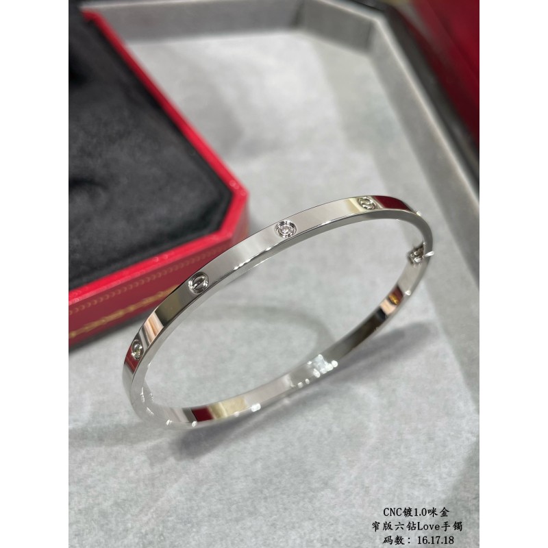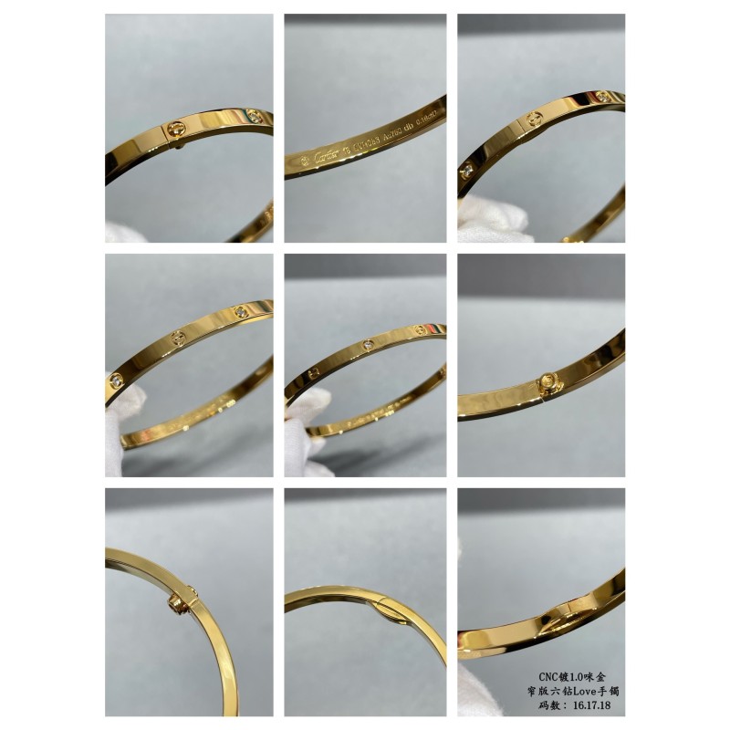 P300 V金镀1.0咪金 2480360 CNC高定卡地亚窄版六钻LOVE手镯,码数16.17.1
