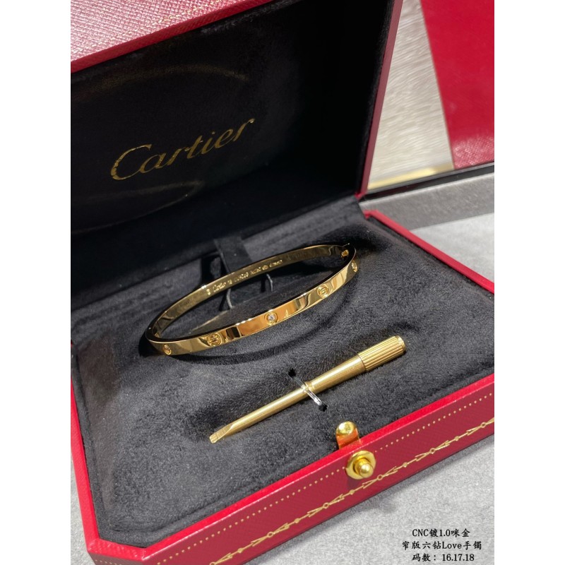 P300 V金镀1.0咪金 2480360 CNC高定卡地亚窄版六钻LOVE手镯,码数16.17.18 高级精工制作 钉位抛光处理 螺丝刀开口设计90度拧螺丝 ZP30000出头 上手大方秀气耐看经典中的经典 非常的好搭配 无论是单戴还是叠戴 LOVE手镯的意义就是锁住一生的爱情,每一条划痕都有她的故事