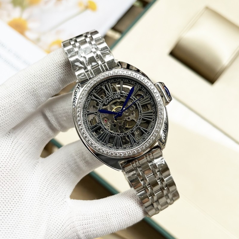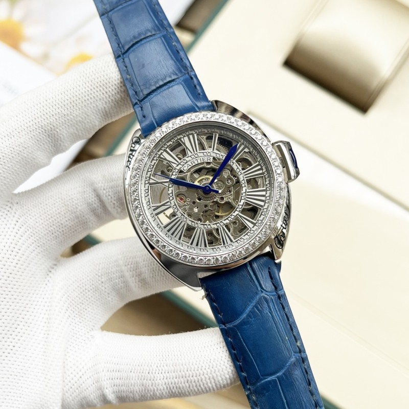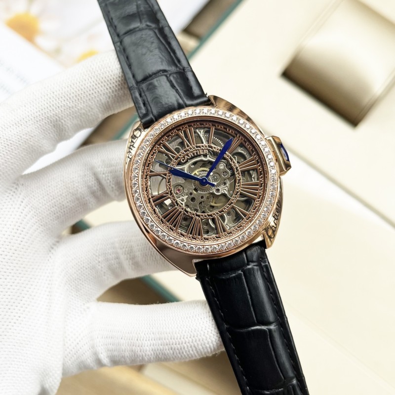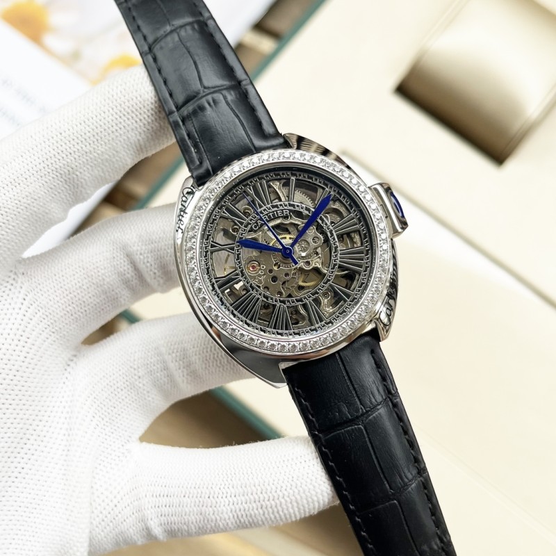 金白同价:皮带p600 钢带620。卡地亚-Cartier 精品男士腕表,劲爆镂空设计,尊贵大气,绅