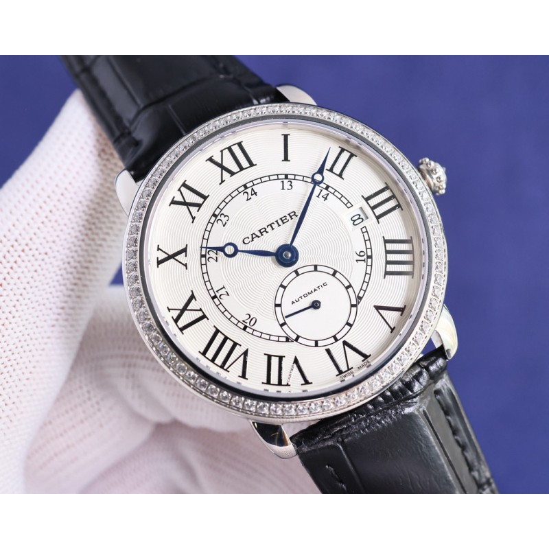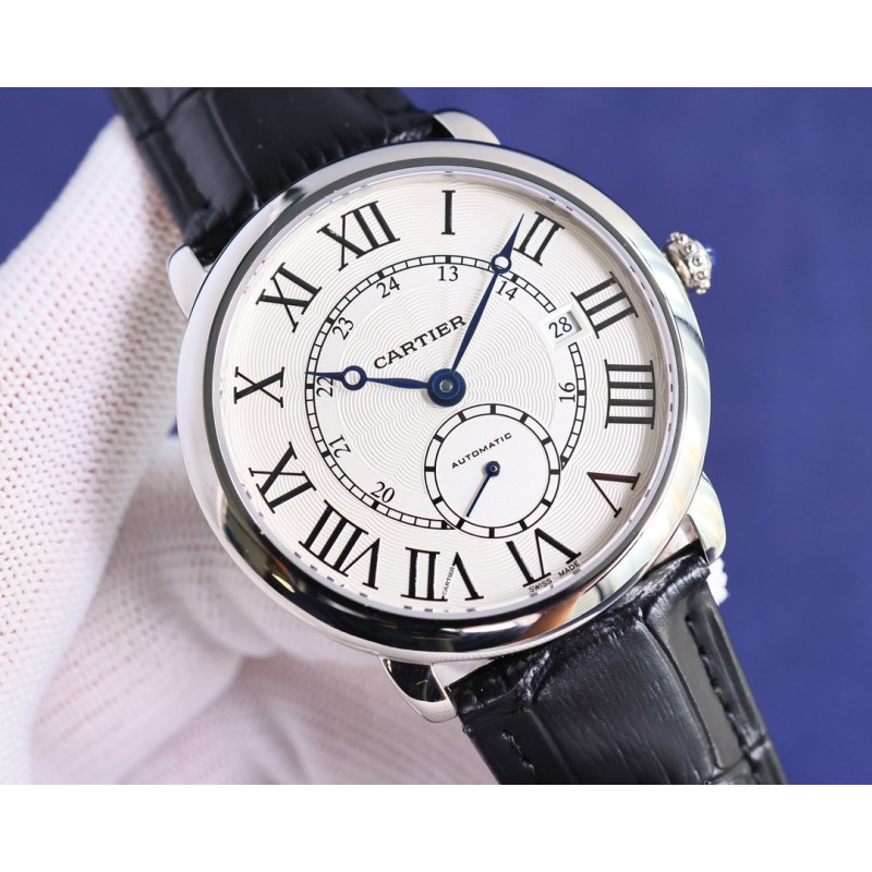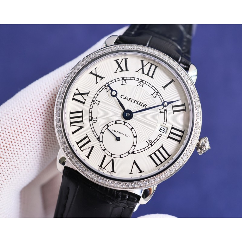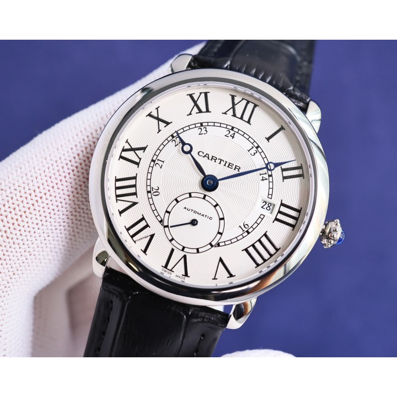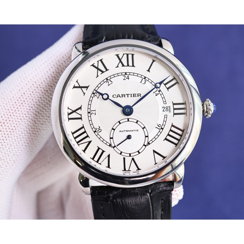 大气上档次 : 台湾厂出品,精品复刻,敬请品鉴。 TW 推出卡地亚伦敦系列 RONDE DE CARTIER 男士腕表采用 Cal.1904 机芯 动力储备 48 小时。 表径 40毫米(同步正品)意大利牛皮搭配原装折叠扣 防水深度 30 米。 雕纹表盘 罗马数字时标 苹果形蓝钢指针 。表壳材质 316L精钢,表镜前后蓝宝石玻璃。 圆珠形把的 镶嵌一颗明亮式切割圆钻 既高端又奢华。