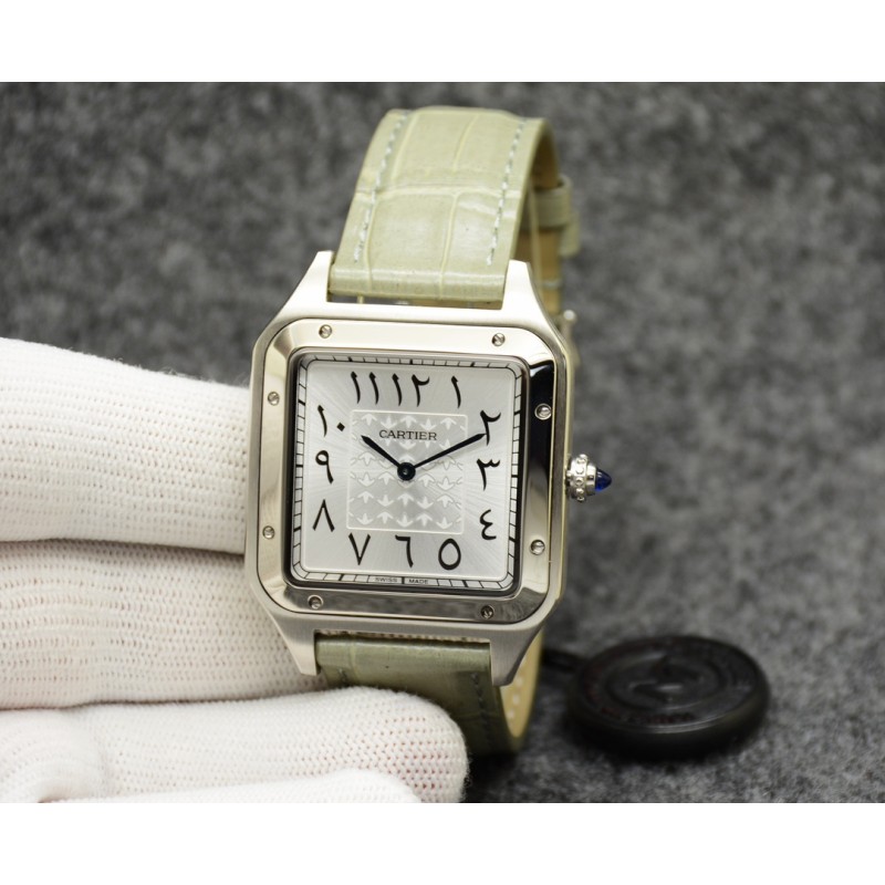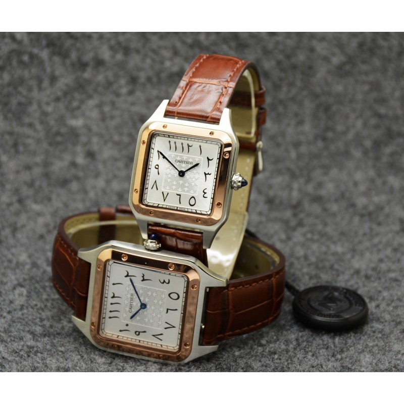 卡地亚腕表推出了全新的Santos-Dumont男女腕表,新系列的设计和Santos家族一脉相承。采用精钢表壳,内置瑞士进口石英机芯,深度防水,走时精准稳定,搭配进口真皮表带,潮流时尚大方【尺寸:大号35*46mm,中号31.5*43.5mm厚度:7.5mm】编号:286920(金20)