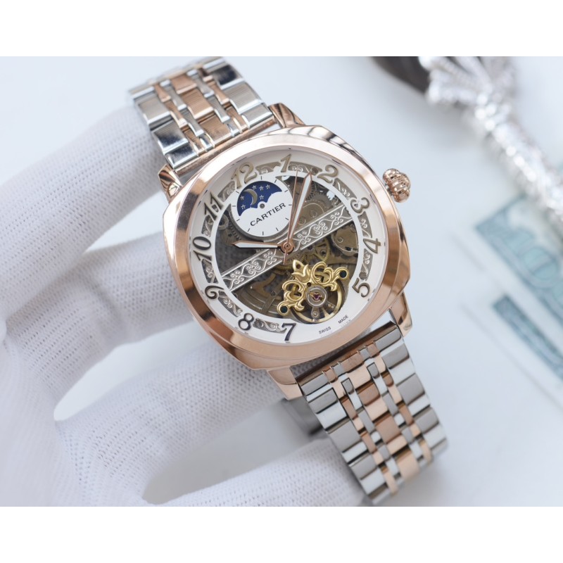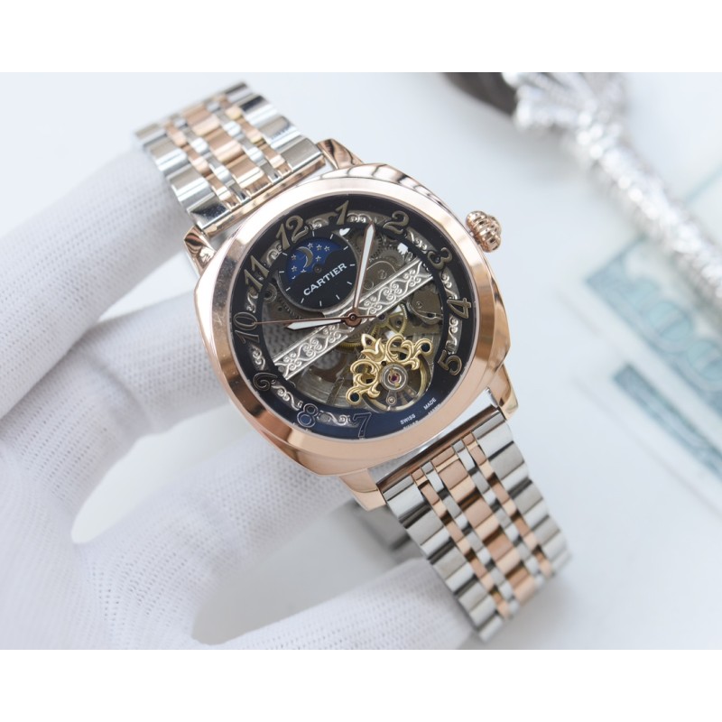 白壳460,玫瑰金480。【简约时尚 优雅大方】卡地亚-Cartier 男士腕表 全自动机械机芯
