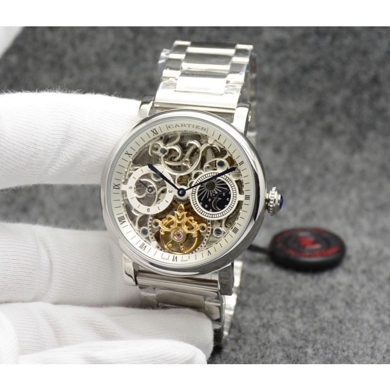 卡地亚 Cartier最新款男士机械腕表[悠闲] [鼓掌]精钢表壳,抛光打磨!表盘采用飞轮镂空设计