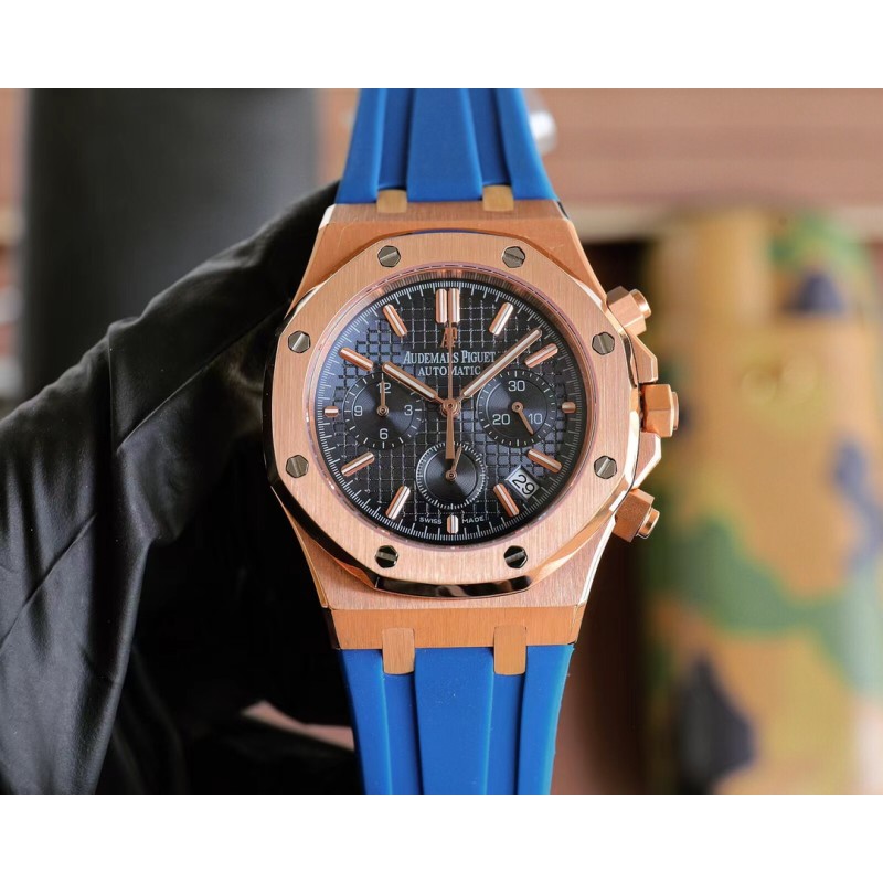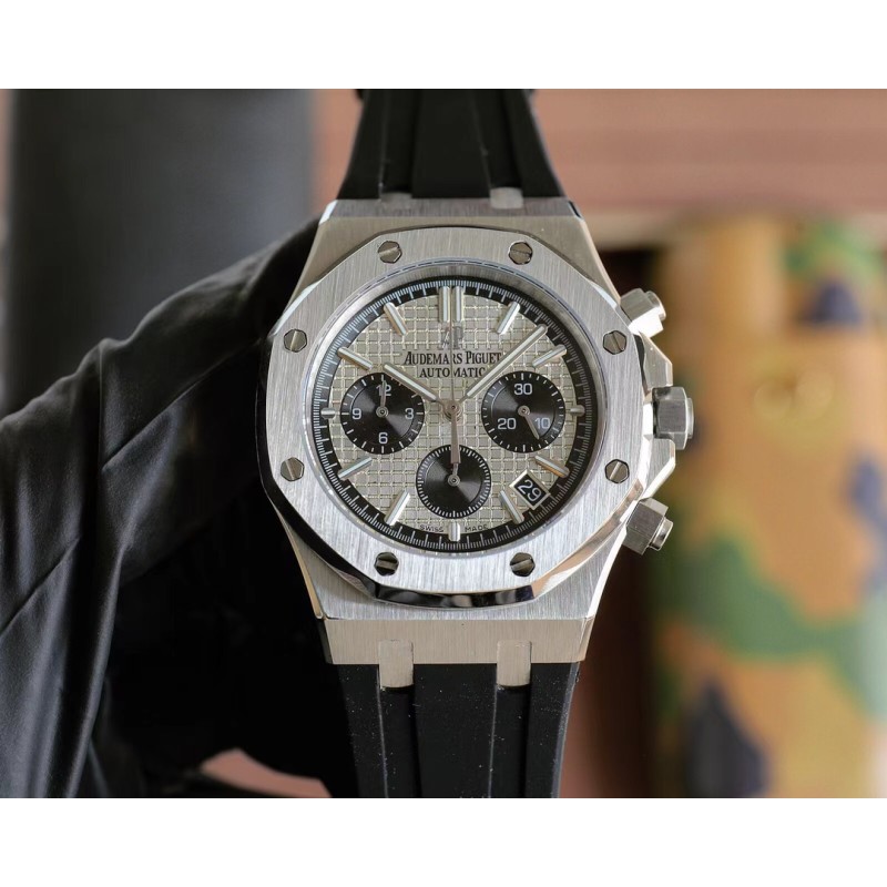 白壳530 玫壳550 爱彼 AP 皇家橡树系列 镀膜玻璃 尺寸42mm*14mm 防水胶带配AP字样原装针扣 搭载日本多功能石英机芯 八角拉砂钢壳配网格面 冷酷 霸气 不一样的硬汉