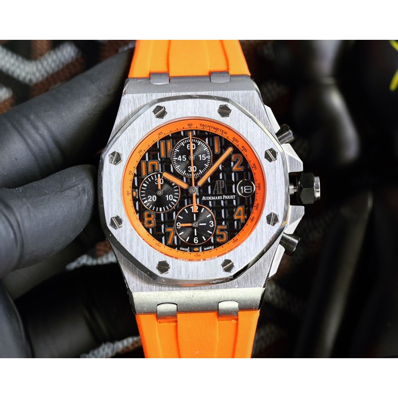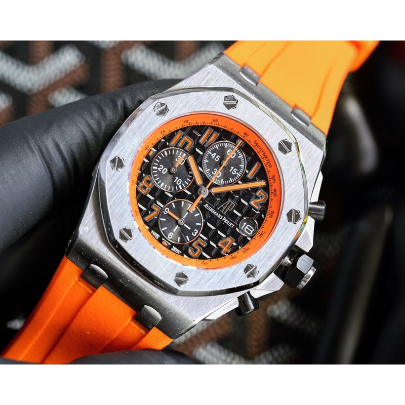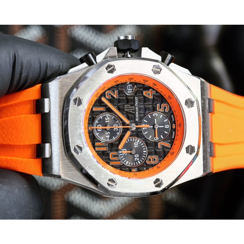 爱彼 AP 皇家橡树系列 镀膜玻璃 尺寸42mm*14mm 防水胶带配AP字样原装针扣 搭载日本多功能石英机芯 八角拉砂钢壳配网格面 冷酷 霸气 不一样的硬汉