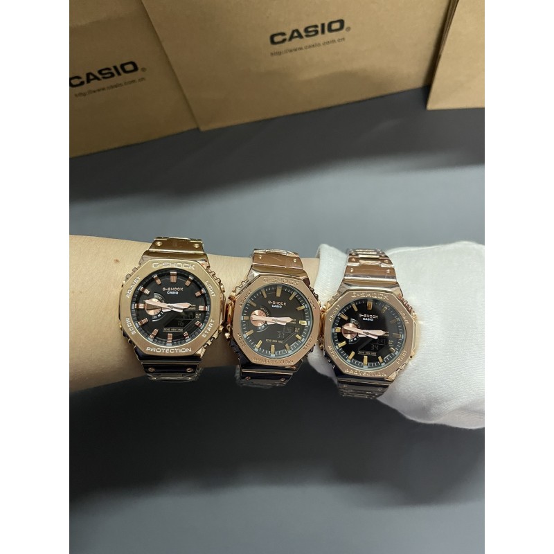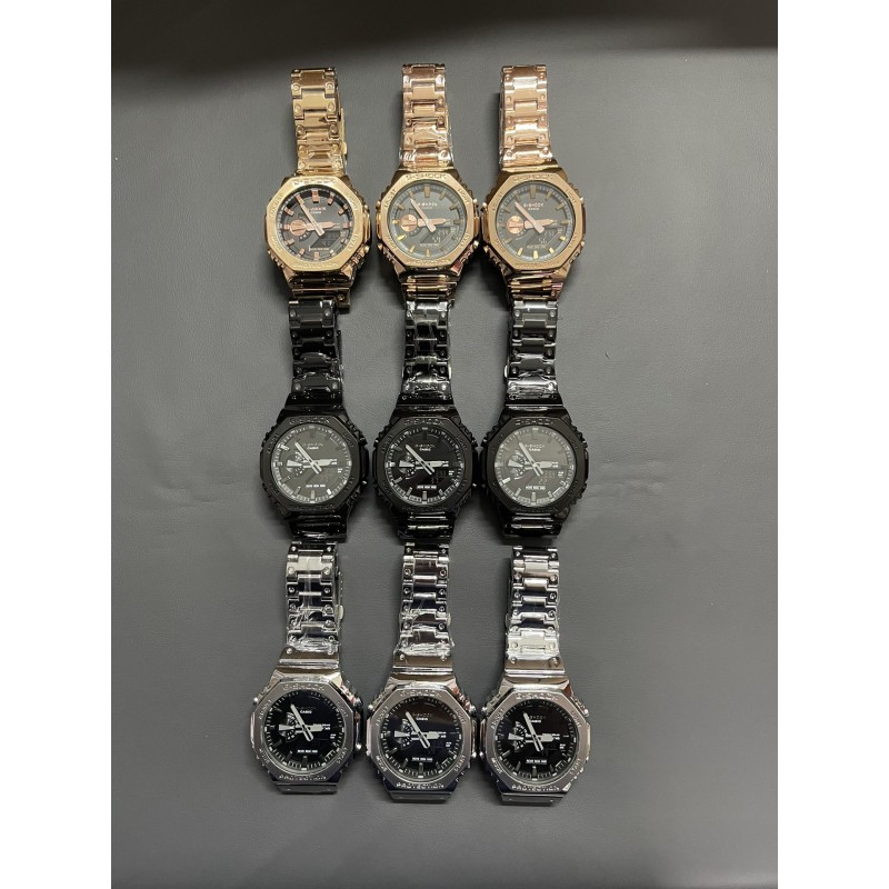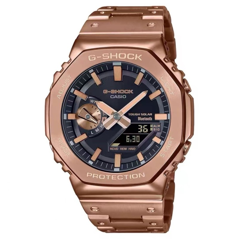 金属八角钢带系列 型号GM-B2100 功能:太阳能,秒表(精确到1/1000秒)世界时间,倒计时,闹铃,间歇响报,自动日历,45度自动抬手亮Led照明! 不锈钢表扣、全钢表带、不锈钢表壳、矿物质玻璃、不锈钢后盖、完美的刻度、原装日本机芯、机芯带双重显示~指针显示~屏幕显示、表针细磨、采用进口太阳能液晶屏、进口LED灯!
