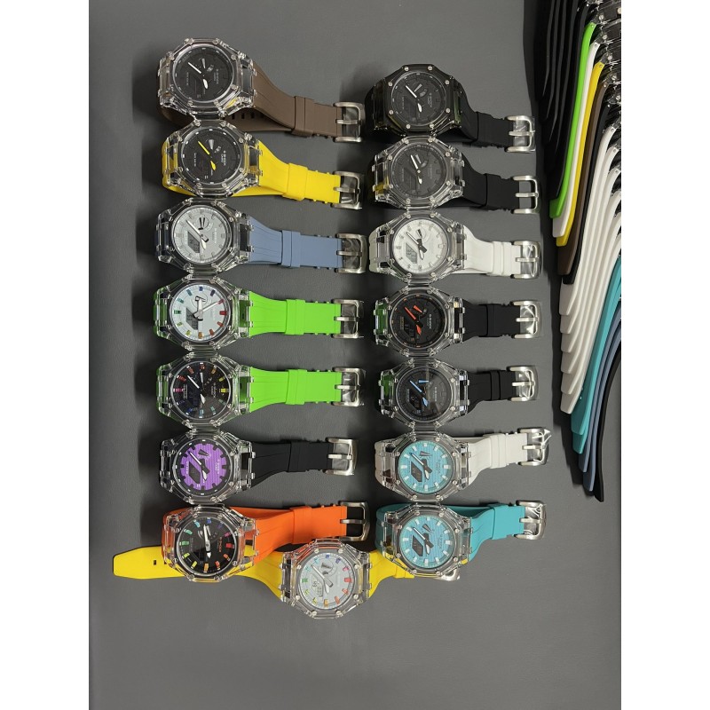 AP农家橡树透明冰川限量 型号:GM-2100A 功能:太阳能、秒表(精确到1/1000秒)世界时间,倒计时,闹铃,间歇响报,自动日历,45度自动抬手亮Led照明! 不锈钢表扣、橡胶表带、硬橡胶表壳、矿物质玻璃、不锈钢后盖、完美的刻度、原装机芯、机芯带双重显示~指针显示~屏幕显示、表针细磨、采用进口液晶屏、进口LED灯!