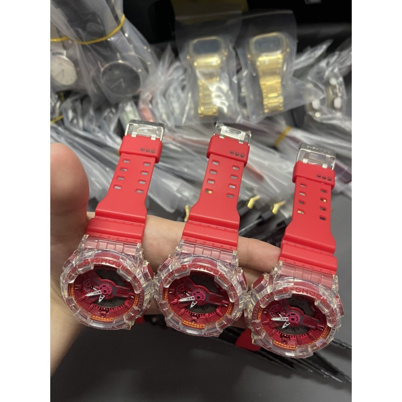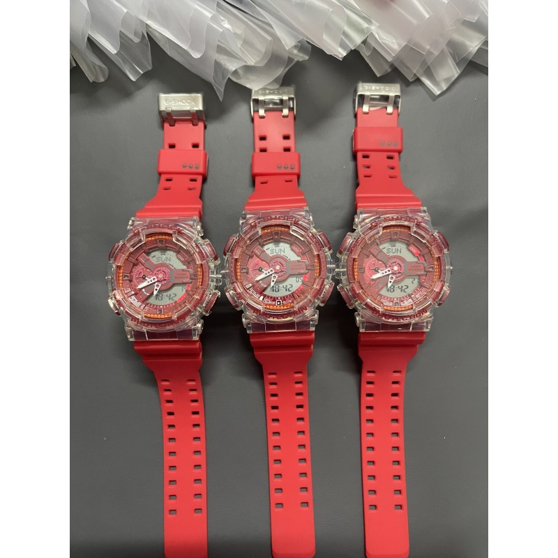 新款扭蛋机系列冰韧透明红限量版 型号:GA~110 功能:秒表(精确到1/1000秒)世界时间,倒计时,闹铃,间歇响报,自动日历,45度自动抬手亮Led照明!