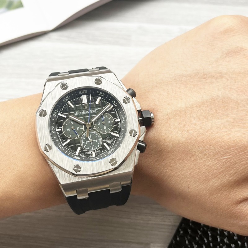 白630金650 新款首发——一波狠货! 原版开模 市场最高性价比版本 爱彼Audemars Piguet 与原装一致,市场超高品质) 爱彼皇家橡树离岸型系列,自动上链机械机芯(升级原装3841自动锤,与原版更接近),新款表盘3D油压效果,316L精钢表壳,超高硬度水晶玻璃镜面,100米超强防水(可潜水游泳)42mm表径,厚度14毫米,表盘具有爱彼独家“Méga Tapisserie”超大型格纹装饰,立体感极强,升级超强夜光功能,表壳整体全部CNC处理,完美还原原装结构,表带为橡胶材质,柔软度与原装吻合,彰显男人霸气请认准独家品质
