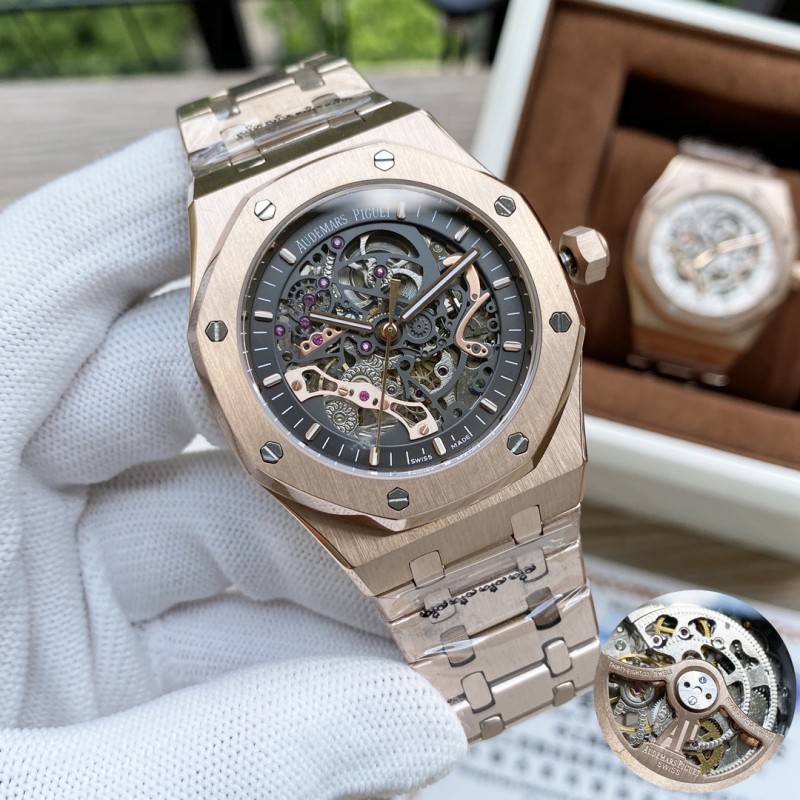 白壳490,玫壳+20。爱彼 AP 皇家橡树系列,精品男士腕表,劲爆镂空设计,技艺精湛,独具匠心,尊