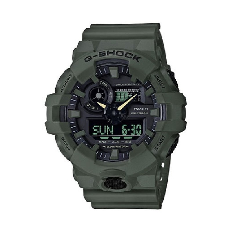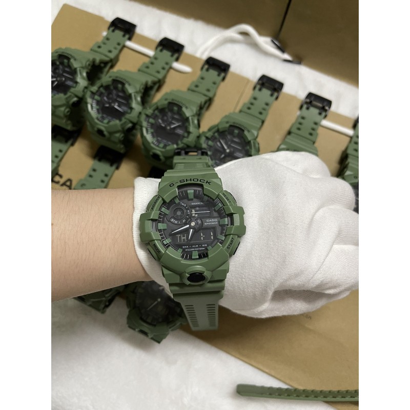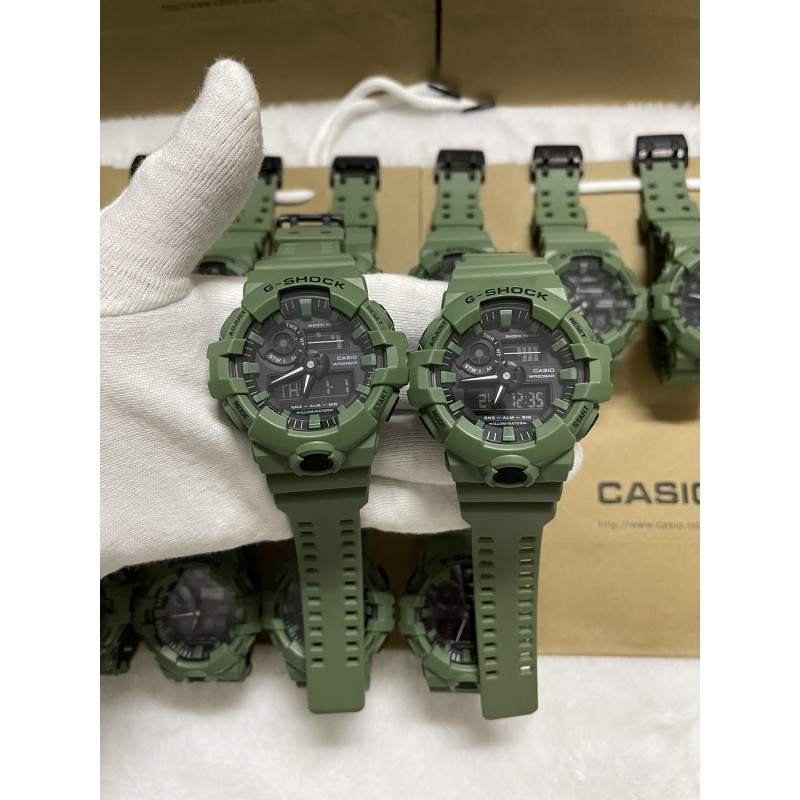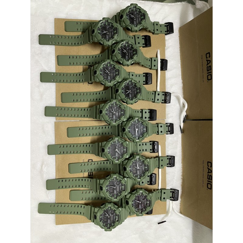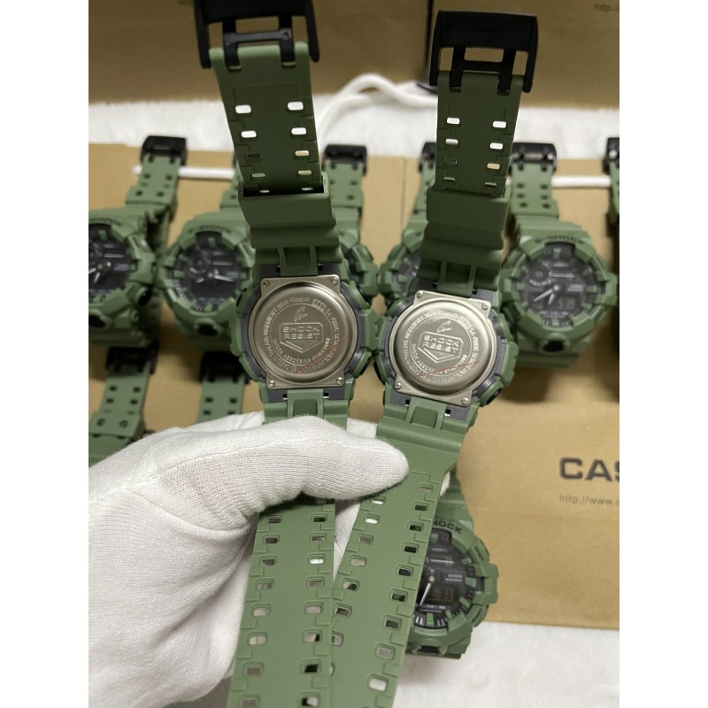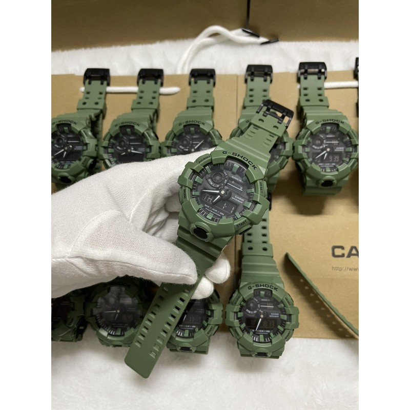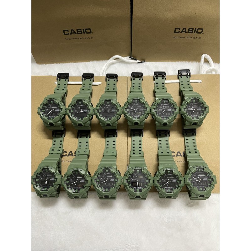 新款军事风军绿青龙风限量型号GA700 功能:秒表(精确到1/1000秒)世界时间,倒计时,闹铃,间歇响报,自动日历,45度自动抬手亮Led照明!