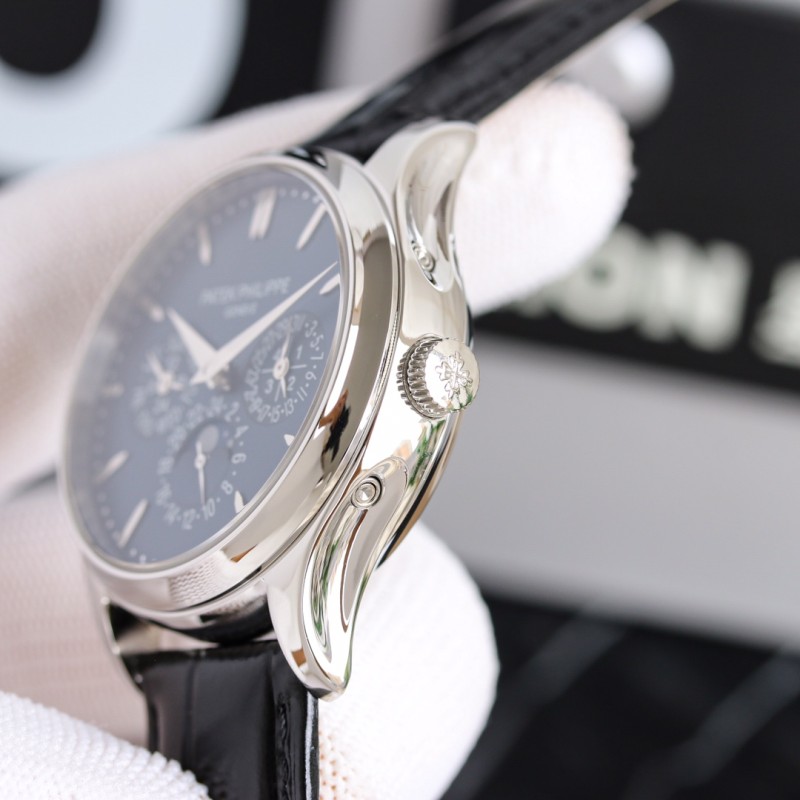 白1650 金玫1700 【2024墙裂推荐 震撼推出】百达翡丽复杂功能时计5146/5147多功能腕表,堪称腕表精品当中的精品! 腕表直径为39毫米,作为一款男士腕表,它的表盘大小适中。日期指示盘和月份指示盘分别位于表盘中心的左右,为我们奉上对称的美感,整个表盘的布局大方得体,包括了如此之多的功能的同时,又不会让人觉得繁杂。 机芯采用定制版Cal.324 S IRM QA LU,完美还原正品诸多功能,提供了强大的时间衡量功能。意大利牛皮表带,专属的灯笼扣,任何季节,任何场所,任何职业人均适合佩戴,让手腕佩戴得更舒适,让气质绽放。此款腕表具有30米防水功能,满足大众日常生活,休闲度假必备腕表。 百达翡丽5146/5147可以说是腕表中的精品,功能方面的巧妙构思,外观上的合理布局,以及优越的机芯性能,无一不体现出百达翡丽的独特设计,一件经典的艺术品,一件完美的收藏品。百达翡丽的专属语:谁都无法拥有一块百达翡丽,我们只是为下一代保管。但试问爱表之人,谁不愿意拥有一块百达翡丽呢,这或许是很多爱表之人初心的起点,甚至是终点。如果有个机会出现在你面前,那么就好好珍惜吧!
