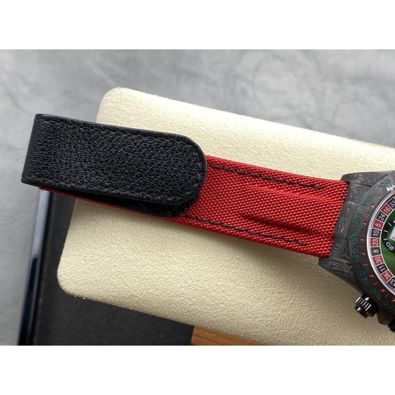 2023年新品,超级碳纤维Diw定制版 4130宇宙计时迪通拿系列 腕表直径为40MM,和普通的迪通拿尺寸都一样。整表重53克,表壳整体采用碳纤维材质,碳钎维材质是一种新型材料,颜色为永不过时的黑色,整体的纹路十分典雅、奢华。碳纤维外柔内刚,质量比金属铝轻,强度却高于钢铁,并且具有耐腐蚀。表壳哑黑色纹理多变,并且每一枚碳纤维腕表会因切割方式有别而展现出不同的纹路,成为独一无二的存在。表带是魔术贴的设计,正面尼龙材质,背面牛皮材质,表扣材质同样为碳纤维.