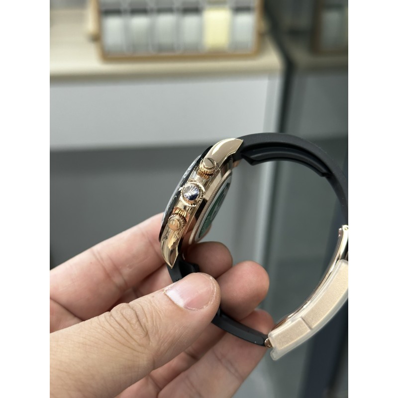 【BT Factory2024墙裂推荐】市场最高版本 劳力Rolex迪通拿腕表!型号:116500 尺寸:40mm×12.2mm 功能:时、分、秒、计时显示 机芯:4130 动力储存:72小时 镜面:蓝宝石 字面:白面,黑面 材质:904L精钢 表带:AR厂钢带 圈口:陶瓷圈镀铂金膜 夜光:瑞士夜光涂料 防水:100米 重量:148克 BT Factory出品,劳力士迪通拿九大亮点: 1BT厂迪通拿4130机芯腕表厚度12.2mm,市场其它版本7750假夹板机芯,通过压低针杆,改薄机芯厚度。稳定性极差,不能做到和正品一致。 2采用4130机芯(原N丹东厂),背后夹板采用雕刻和电镀字体更加光亮。 3钢带采用原AR厂。其次,表扣再次升级比例尺寸。 4表壳采用N工厂对照2022最新版加工,更新底盖抛光亮面尺寸和牙边的弧度。 5表针采用Buff工厂再度升级,三枚小秒针和大秒针,均按照单支定做且实心针套,针帽呈现蘑菇圆头状。 6陶瓷圈Cerachrom再升级镀铂金膜字保持不变色,且更新字体粗细。 7字面对照2022最新版白面,采用瑞士油墨加韩国陶瓷调制打磨做到有厚质感纯乳白色与原版无色差。告别市场之前发黑的“死白”色。 8刻度字钉每粒独立CNC雕刻而成,每粒手工打磨边缘。夜光采用瑞士夜光粉与正品无色差。最终效果是市场最接近原版发光视觉。 9玻璃采用全通透蓝宝石,无边缘视觉。目前,市场的玻璃边缘呈现偏圆弧肥厚的视觉。只有BT厂的细节做工与正品一致。 BT Factory2024匠心力作 欢迎各位表友品鉴!