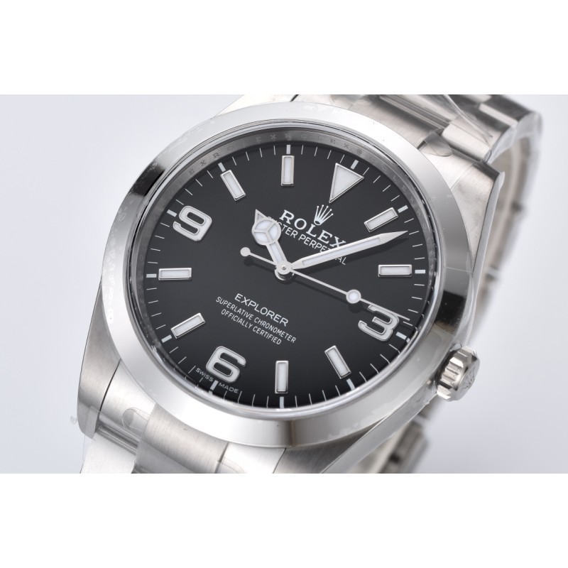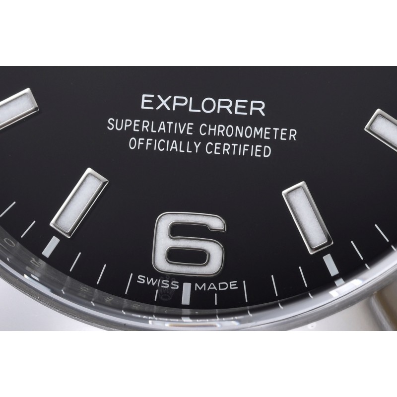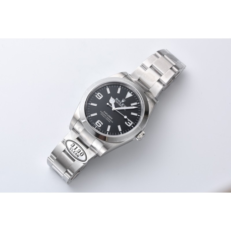 clean厂/c厂 探险家一214270 本次探险家一214270 39mm 搭载3132机芯/图片贴纸错误 虽然这款并不是新款,在这之前也有不同工厂制作,但是都没有特别好的,甚至有部分细节可以说完全不对版。出于个人情怀,所以特别制作了这枚39mm 探险家1。这款虽然是光圈板带,但是制作工艺也并不简单,特别是表盘上的数字刻度,形状要规整,整体打磨适中,以及填充夜光的难度。包括劳力士独有的奔驰潜水指针。可以说 探险家是蚝式恒动的进阶版。但是又没有水鬼的张扬。低调且内敛。是可玩性非常不错的一枚腕表。仿真度不言而喻。随后也会放出真假对比供玩家鉴赏。
