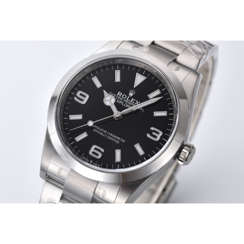 clean厂/c厂 探险家一124270 本次探险家一124270 36mm 在这之前也有不同工厂制作,但是都没有特别好的,甚至有部分细节可以说完全不对版。1。这款虽然是光圈板带,但是制作工艺也并不简单,特别是表盘上的数字刻度,形状要规整,整体打磨适中,以及填充夜光的难度。包括劳力士独有的奔驰潜水指针。可以说 探险家是蚝式恒动的进阶版。但是又没有水鬼的张扬。低调且内敛。是可玩性非常不错的一枚腕表。仿真度不言而喻。随后也会放出真假对比供玩家鉴赏。