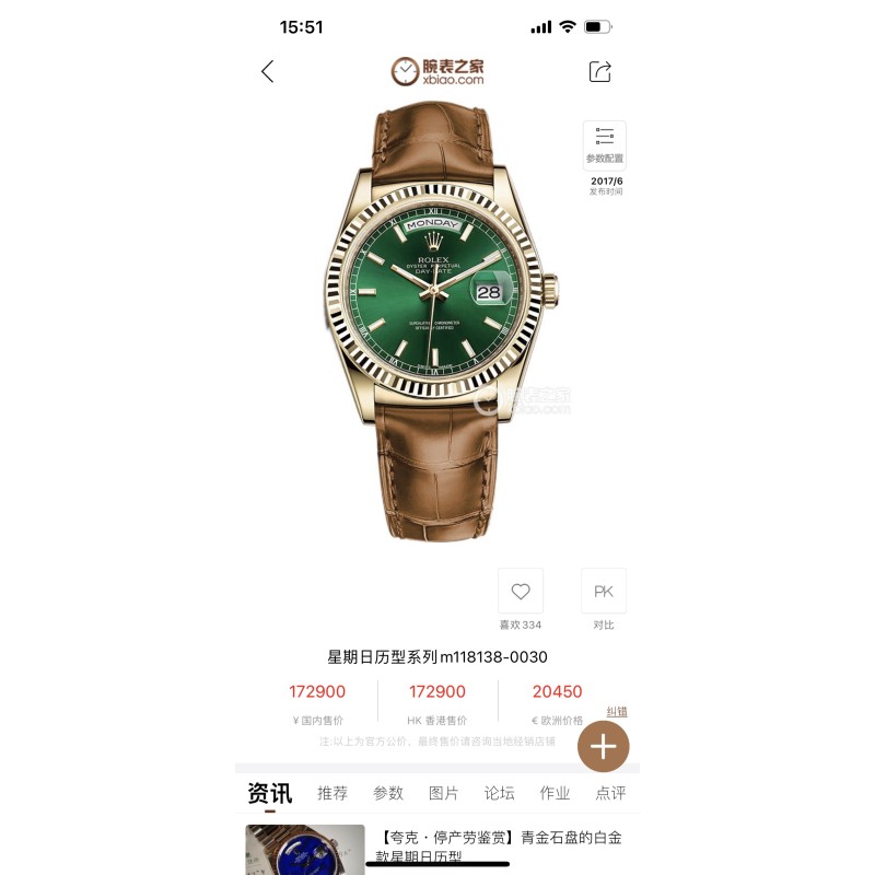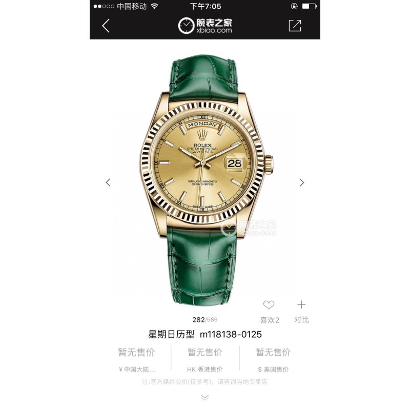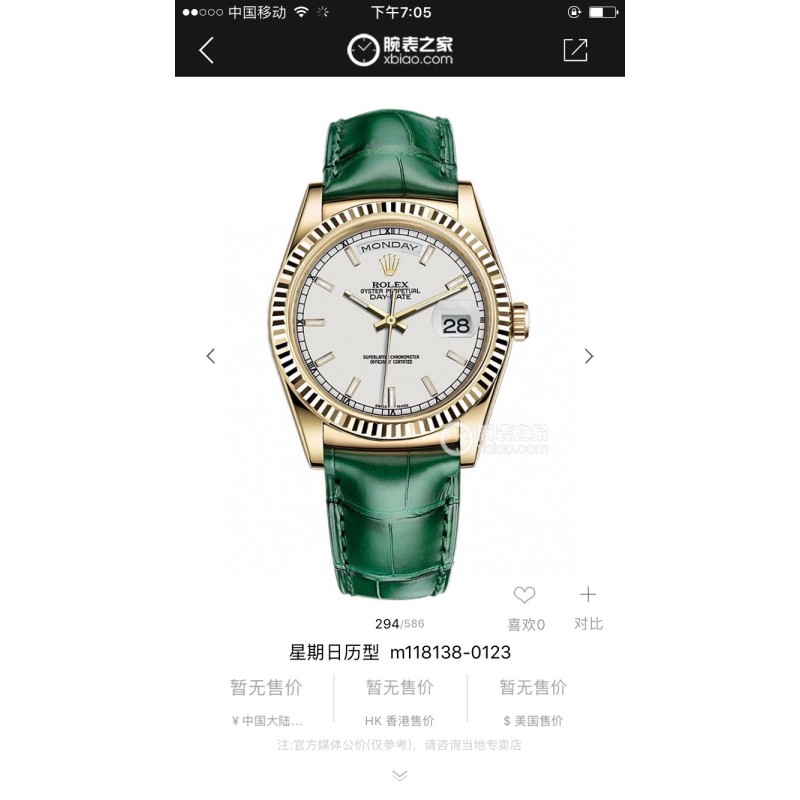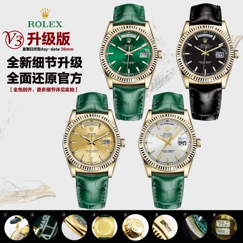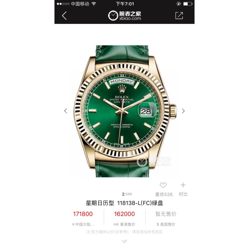 牛皮 1250 鳄鱼皮 300 满钻面100 劳力士 ROLEX 日志系列XF3 闪闪发光的劳来了劳力士 ROLEX 星期日历型 day-date 36mm系列118138皮带绿珐琅满天星少量到货!劳力士满天星在名表里面就像一颗闪闪发光的明星,气质魅力无可匹敌。它的技术细腻而巧妙,其色泽和材质更是完美的晶体形成,散发出一种优雅而雅致的气质!此次搭载的依然为了配合官方厚度一致采用eta2836全自动机械机芯,表盘尺寸官方一致36mm,属于中性尺寸,表盘采用绿色珐琅进口技术镶钻而成,每颗钻石都整齐的环绕着表盘,所有的目光似乎都聚焦在这一圈钻上!从每个细节均注重如一!配置原装表扣!玻璃上的防伪标识依然居中可验,内影编码均与官方一致采用832118序号!压轴之作,闪亮登场!S1精致推荐男士机械腕表