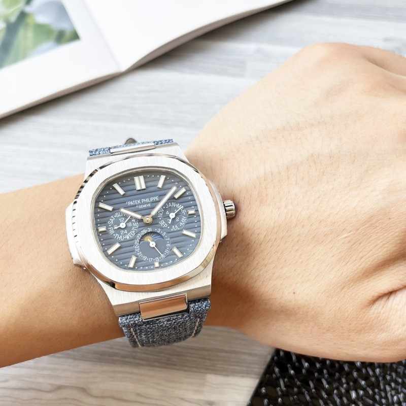 3K百达翡丽运动优雅系列5711/1A 010腕表(鹦鹉螺),精钢表链表壳,深蓝色表盘,324型一体