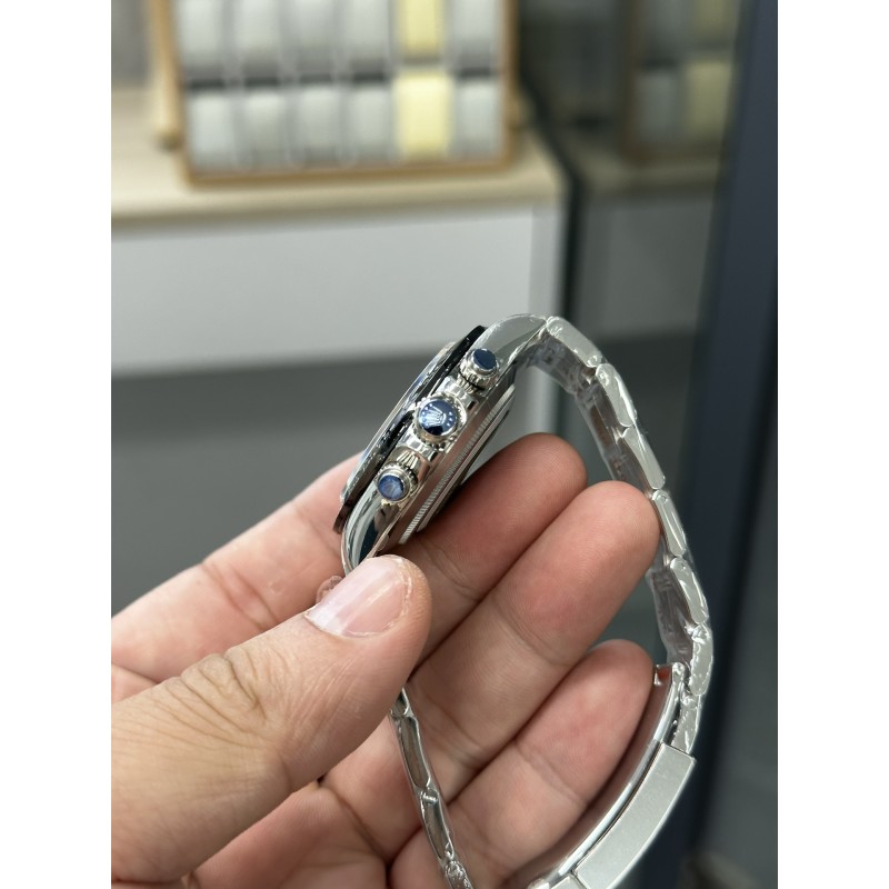 【BT Factory2024墙裂推荐】市场最高版本 劳力Rolex迪通拿腕表!型号:116500 尺寸:40mm×12.2mm 功能:时、分、秒、计时显示 机芯:4130 动力储存:72小时 镜面:蓝宝石 字面:白面,黑面 材质:904L精钢 表带:AR厂钢带 圈口:陶瓷圈镀铂金膜 夜光:瑞士夜光涂料 防水:100米 重量:148克 BT Factory出品,劳力士迪通拿九大亮点: 1BT厂迪通拿4130机芯腕表厚度12.2mm,市场其它版本7750假夹板机芯,通过压低针杆,改薄机芯厚度。稳定性极差,不能做到和正品一致。 2采用4130机芯(原N丹东厂),背后夹板采用雕刻和电镀字体更加光亮。 3钢带采用原AR厂。其次,表扣再次升级比例尺寸。 4表壳采用N工厂对照2022最新版加工,更新底盖抛光亮面尺寸和牙边的弧度。 5表针采用Buff工厂再度升级,三枚小秒针和大秒针,均按照单支定做且实心针套,针帽呈现蘑菇圆头状。 6陶瓷圈Cerachrom再升级镀铂金膜字保持不变色,且更新字体粗细。 7字面对照2022最新版白面,采用瑞士油墨加韩国陶瓷调制打磨做到有厚质感纯乳白色与原版无色差。告别市场之前发黑的“死白”色。 8刻度字钉每粒独立CNC雕刻而成,每粒手工打磨边缘。夜光采用瑞士夜光粉与正品无色差。最终效果是市场最接近原版发光视觉。 9玻璃采用全通透蓝宝石,无边缘视觉。目前,市场的玻璃边缘呈现偏圆弧肥厚的视觉。只有BT厂的细节做工与正品一致。 BT Factory2024匠心力作 欢迎各位表友品鉴!