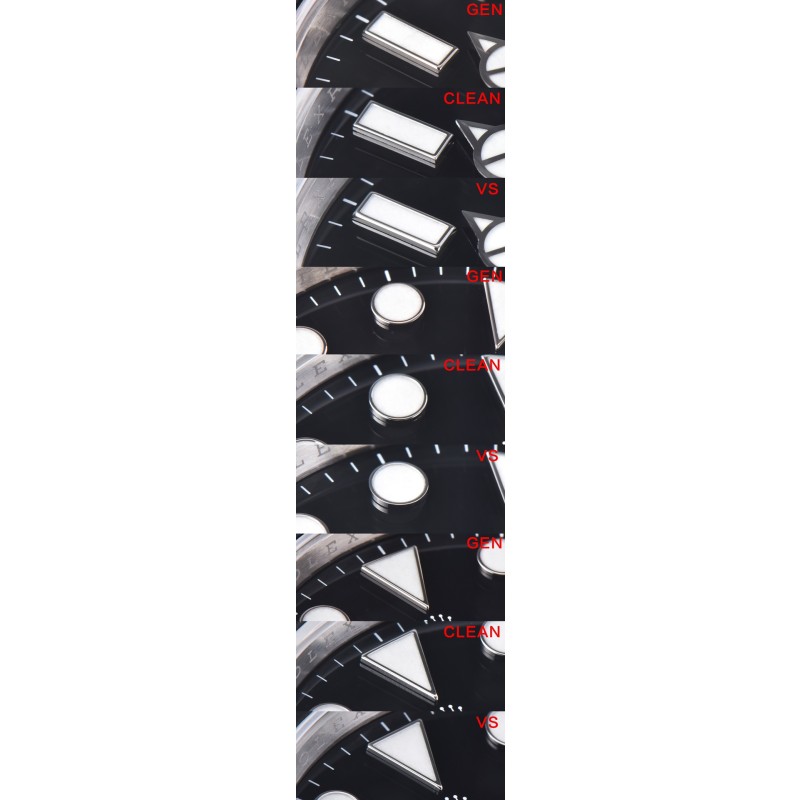 clean厂劳力士游艇42mm 226659白金款 全面修正其他工厂不足之处 搭配3235机芯以及特殊底纹处理的黑色凸字陶瓷圈后面附有真假对比 clean厂42mm 226659 YACHT-MASTER vs VS工厂 下面我们拍摄了 Genuine cf vsf的ym对比 我们通过对比发现了以下区别 1.vsf的表壳形状 和原装有很大的区别 .相对才说c厂在表壳,以及牙圈打磨外观,工艺处理更加细腻。 2.胶带质感也比cf差很多。因为c厂胶带含有特殊的钛合金记忆钢片。 3.指针 vs没有那么立体。并且vs秒针轴完全错误 4.vs玻璃过高,并且没有圆角处理。 5.vs表扣部分外观弧度不够. 6.表壳底面贵金属刻字c厂相对清晰立体 7.c厂日历字体更加有油墨的立体感。 8.vs内影刻字略显粗糙 9.c厂的圆形/方形/三角形字钉更加圆润