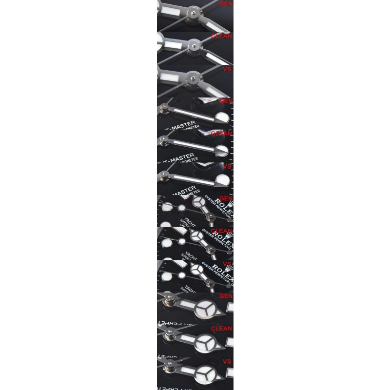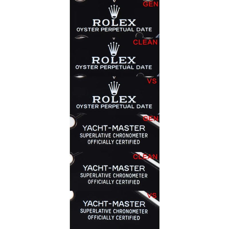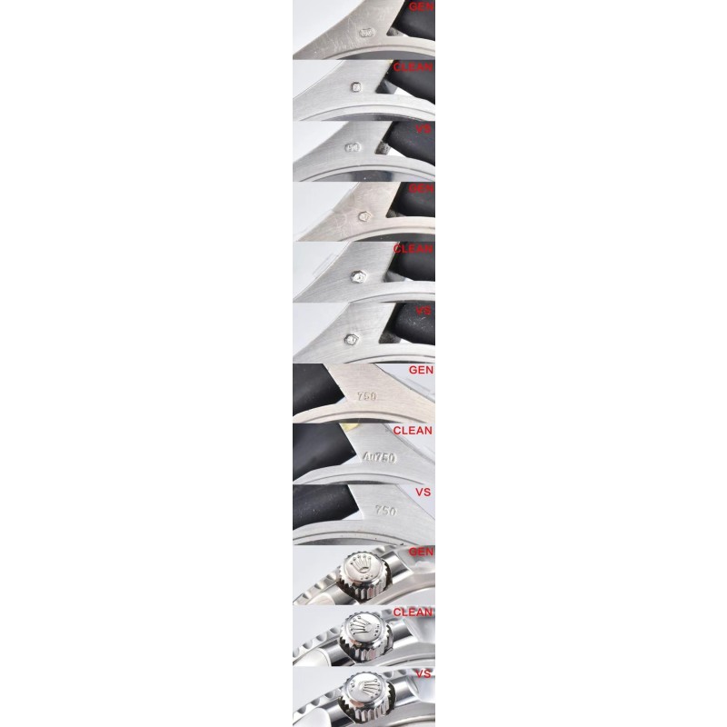 clean厂劳力士游艇42mm 226659白金款 全面修正其他工厂不足之处 搭配3235机芯以及特殊底纹处理的黑色凸字陶瓷圈后面附有真假对比 clean厂42mm 226659 YACHT-MASTER vs VS工厂 下面我们拍摄了 Genuine cf vsf的ym对比 我们通过对比发现了以下区别 1.vsf的表壳形状 和原装有很大的区别 .相对才说c厂在表壳,以及牙圈打磨外观,工艺处理更加细腻。 2.胶带质感也比cf差很多。因为c厂胶带含有特殊的钛合金记忆钢片。 3.指针 vs没有那么立体。并且vs秒针轴完全错误 4.vs玻璃过高,并且没有圆角处理。 5.vs表扣部分外观弧度不够. 6.表壳底面贵金属刻字c厂相对清晰立体 7.c厂日历字体更加有油墨的立体感。 8.vs内影刻字略显粗糙 9.c厂的圆形/方形/三角形字钉更加圆润