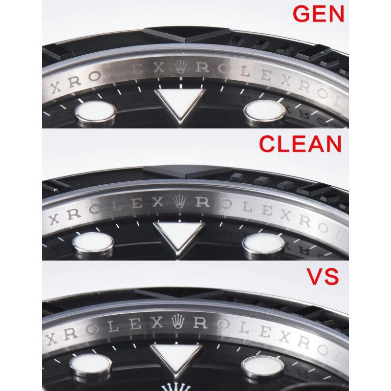 clean厂 c厂 116713格林尼治gmt间金 陶瓷圈字体细节对比,12点位三角部分,